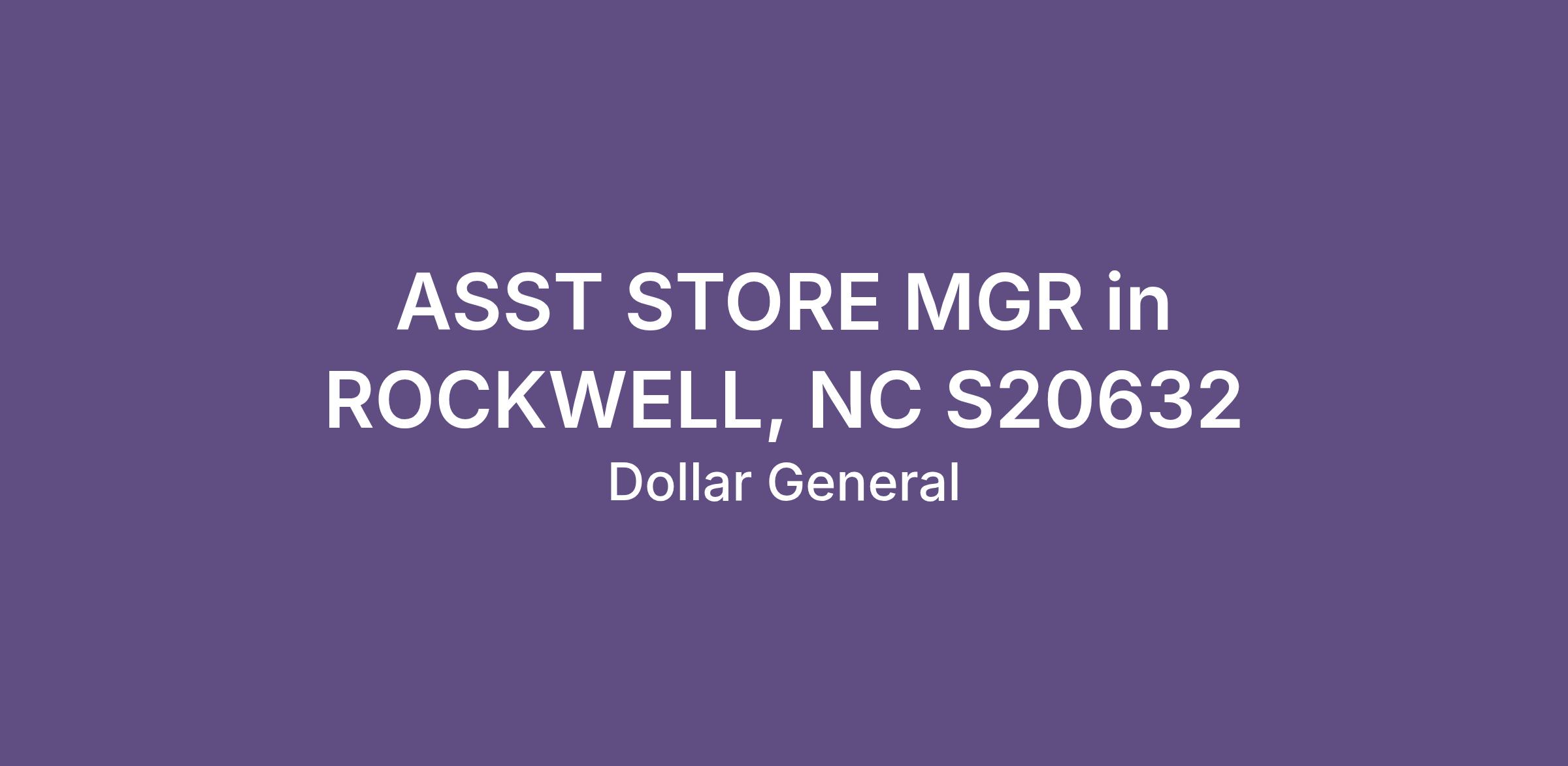 ASST STORE MGR in ROCKWELL, NC S20632