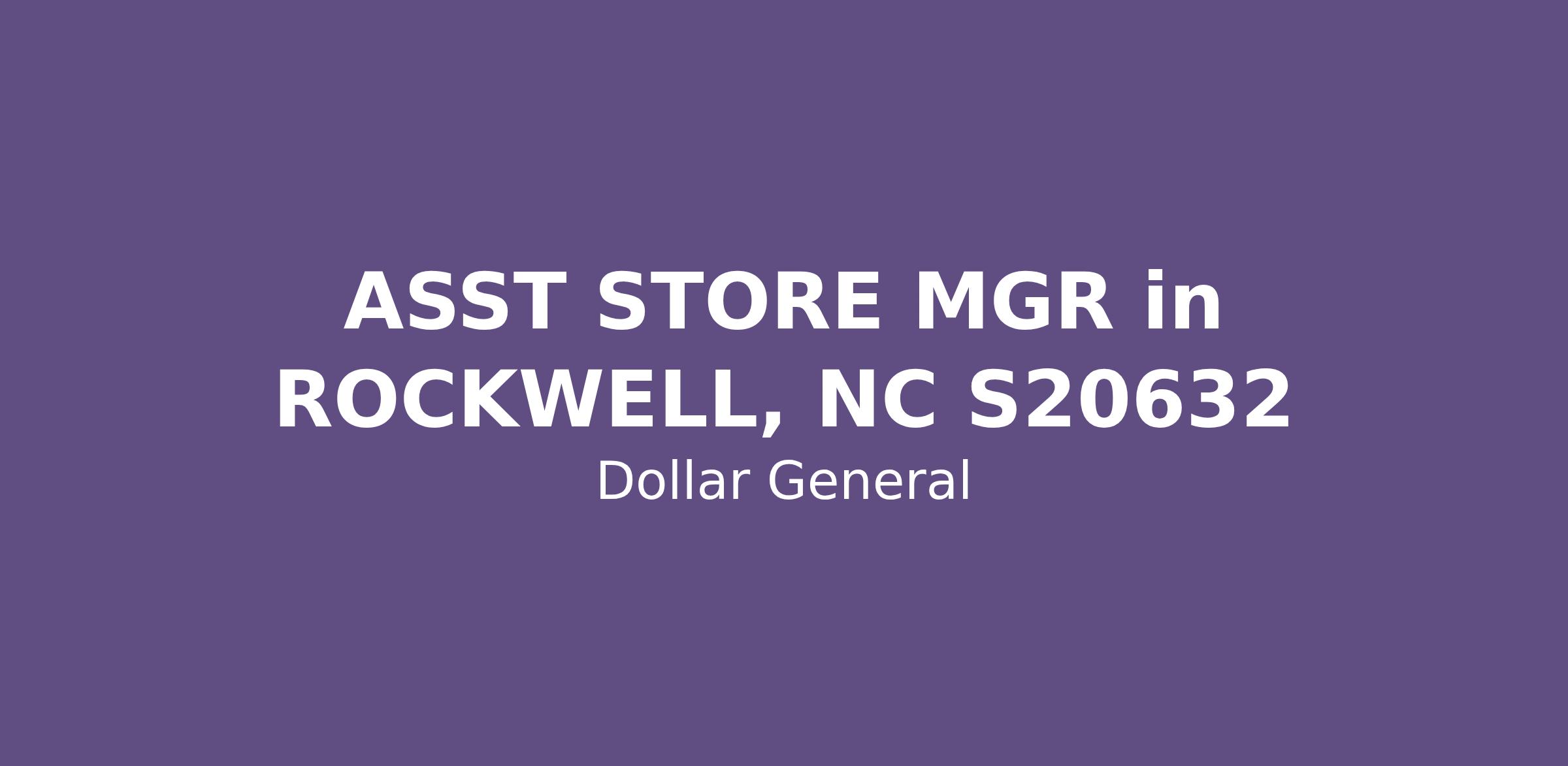 ASST STORE MGR in ROCKWELL, NC S20632
