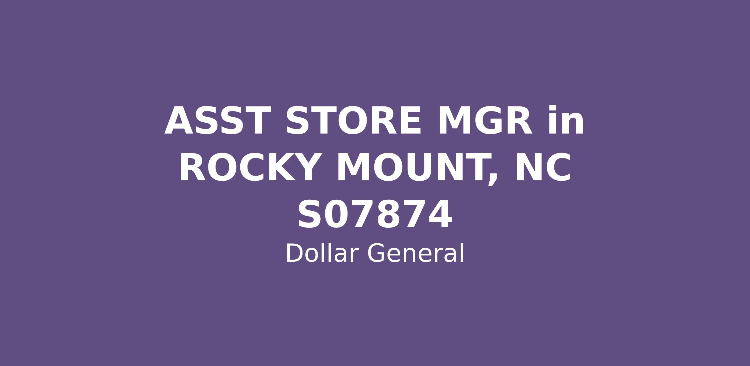 ASST STORE MGR in ROCKY MOUNT, NC S07874