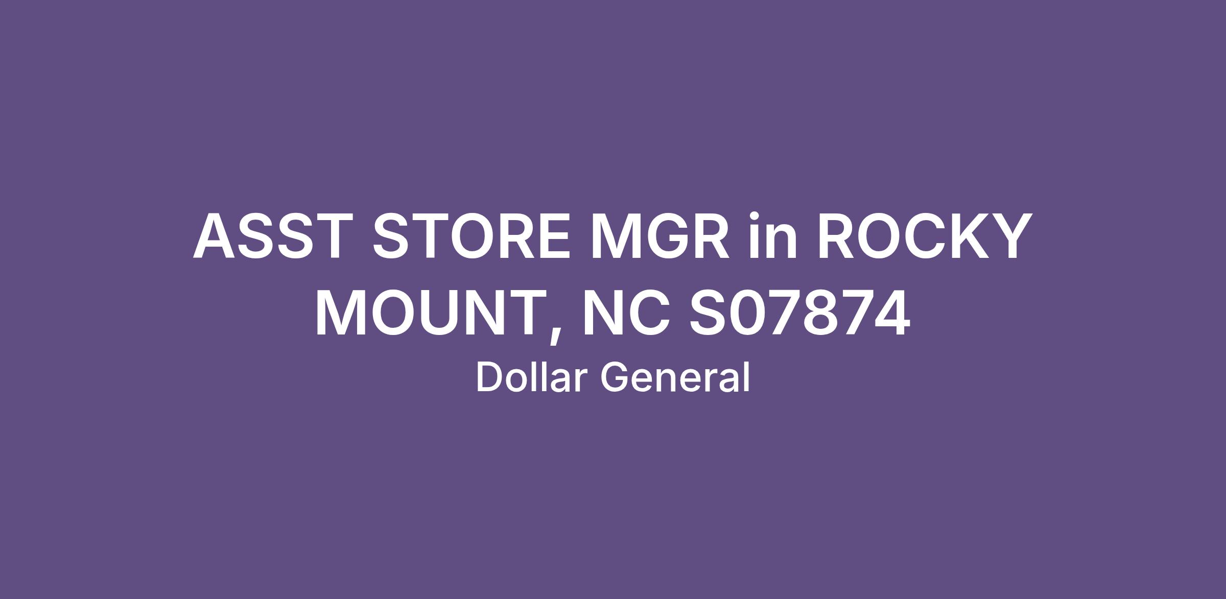 ASST STORE MGR in ROCKY MOUNT, NC S07874