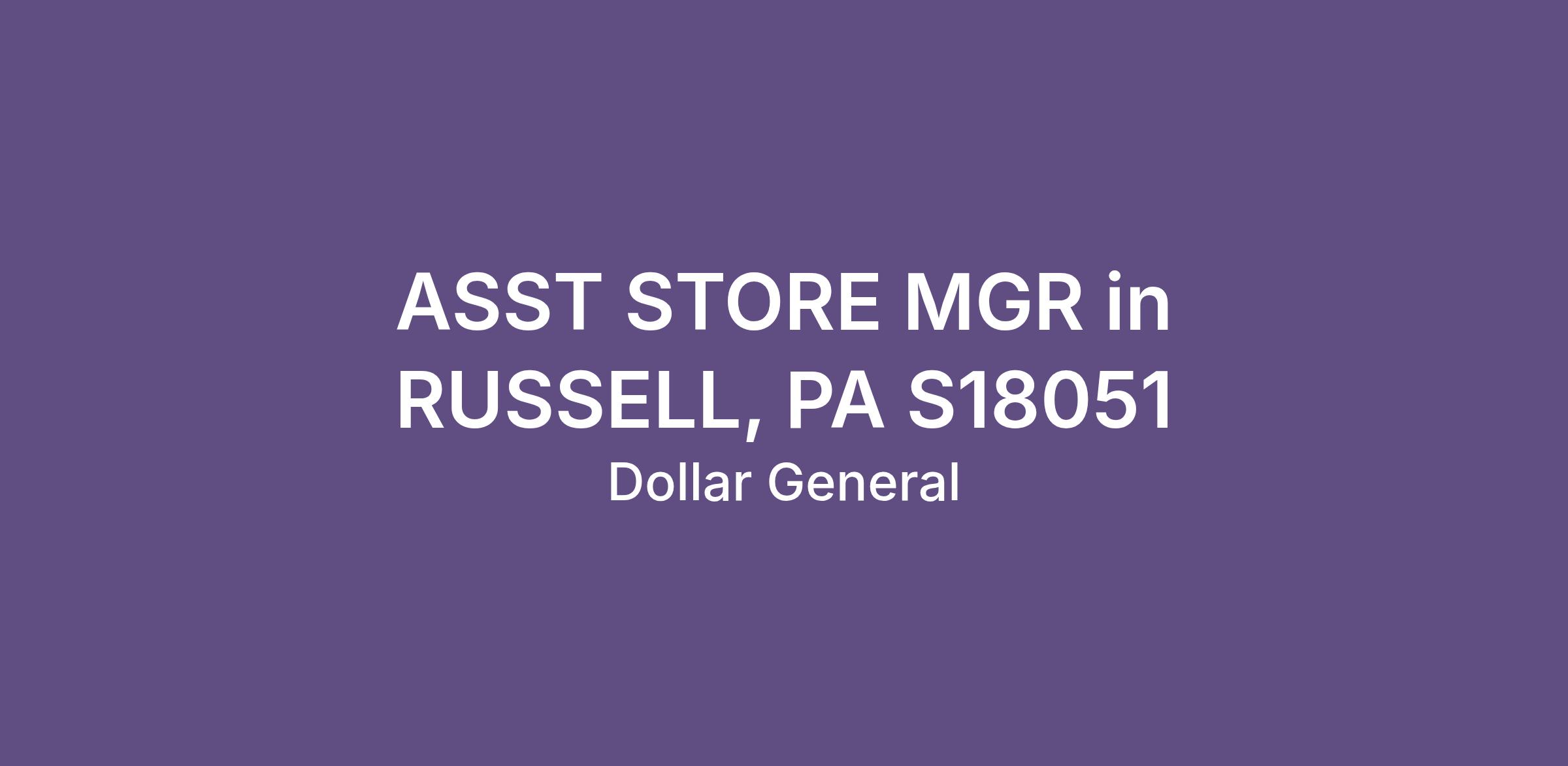 ASST STORE MGR in RUSSELL, PA S18051