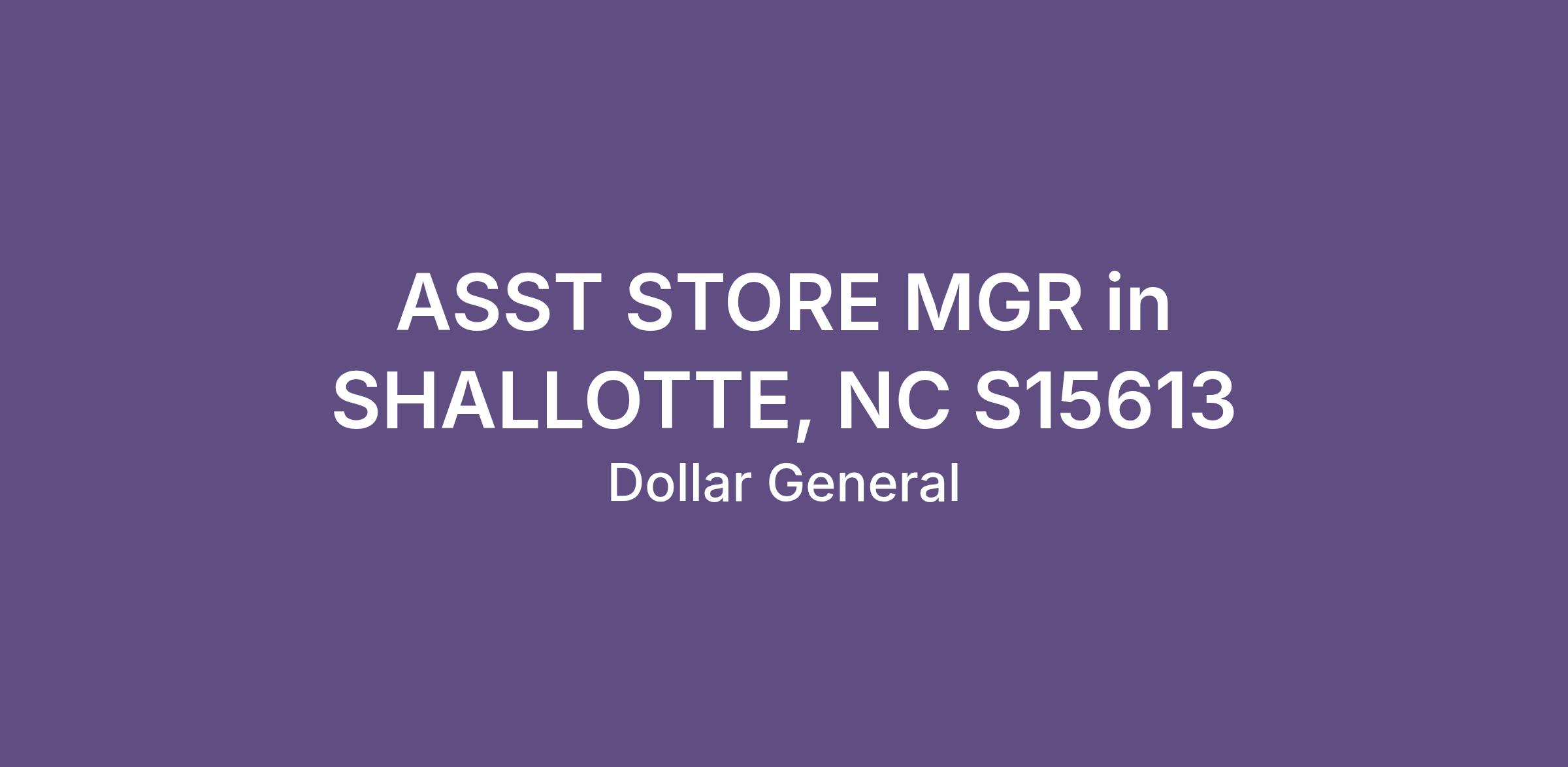 ASST STORE MGR in SHALLOTTE, NC S15613