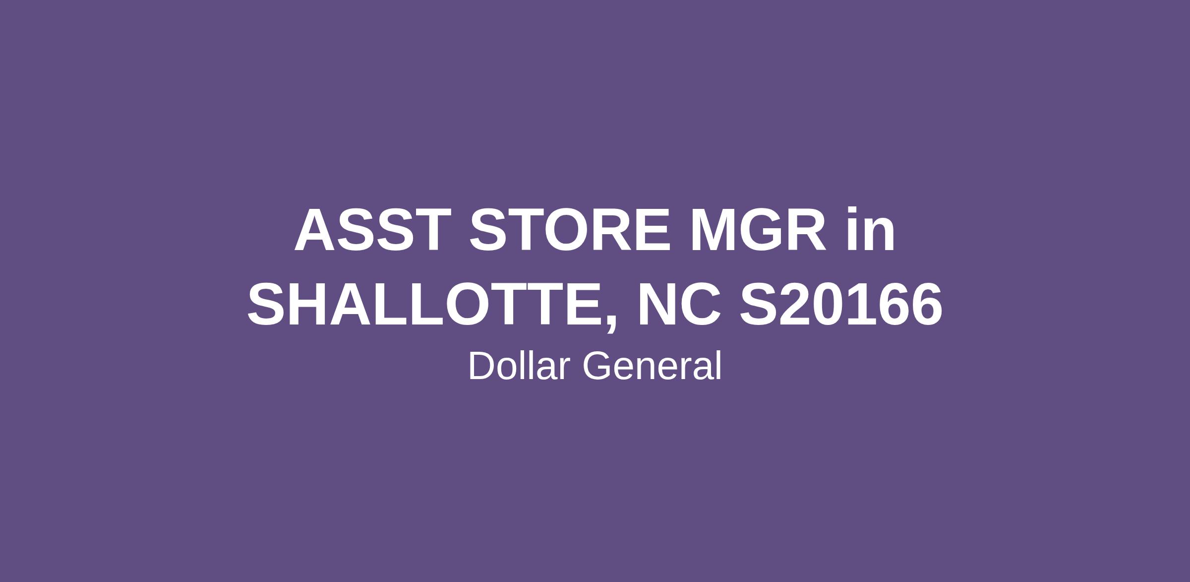 ASST STORE MGR in SHALLOTTE, NC S20166