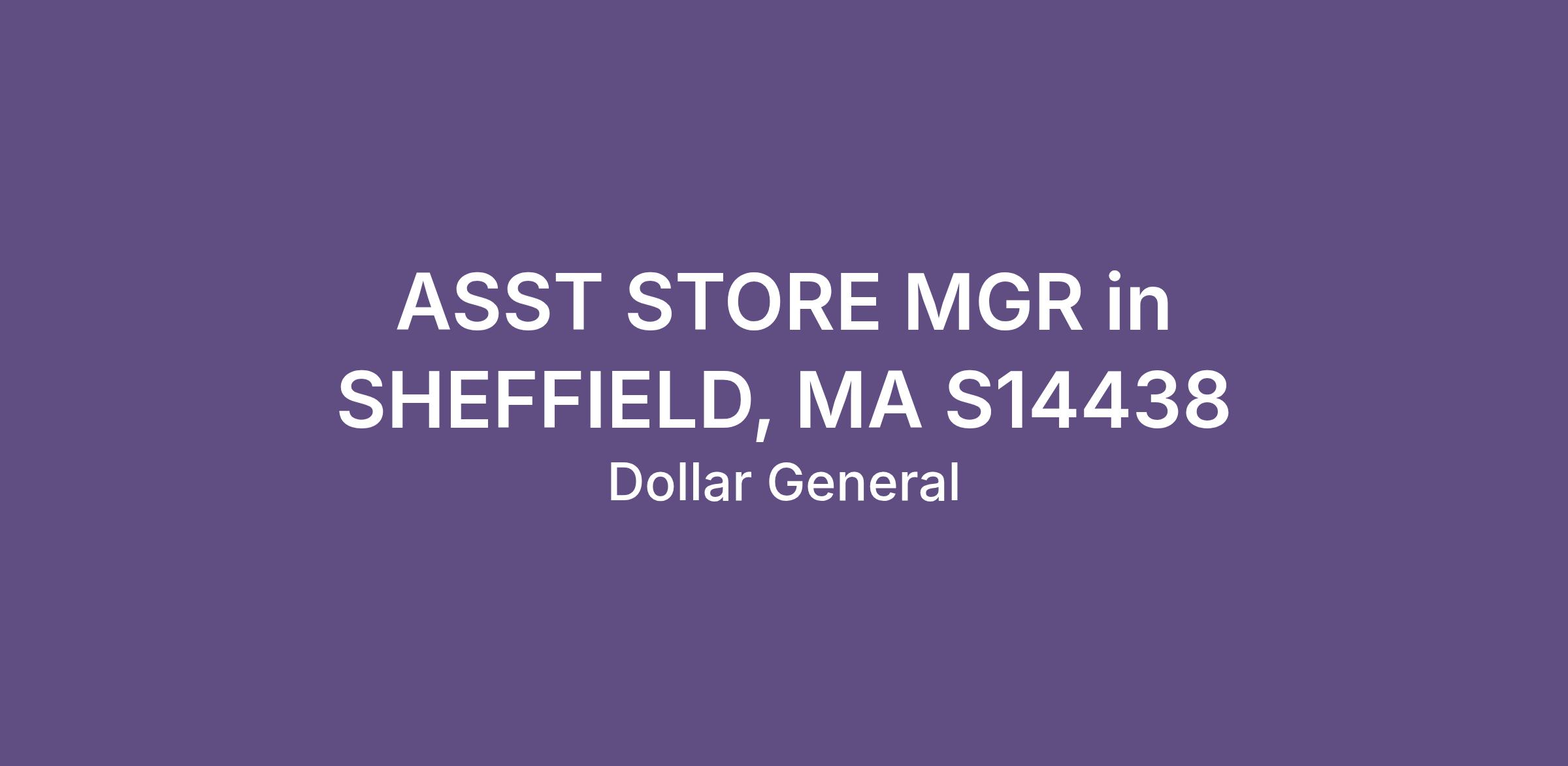 ASST STORE MGR in SHEFFIELD, MA S14438