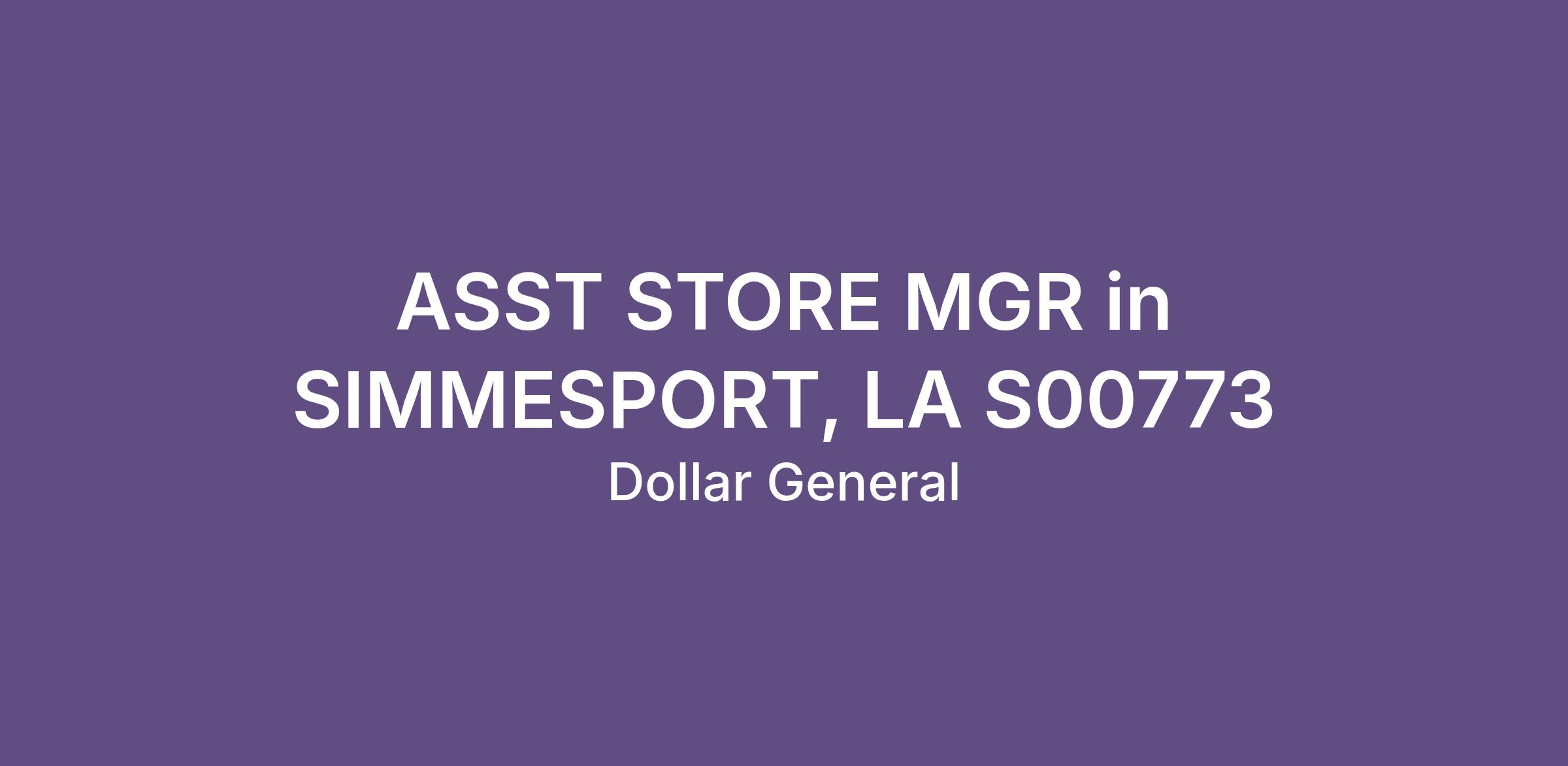 ASST STORE MGR in SIMMESPORT, LA S00773