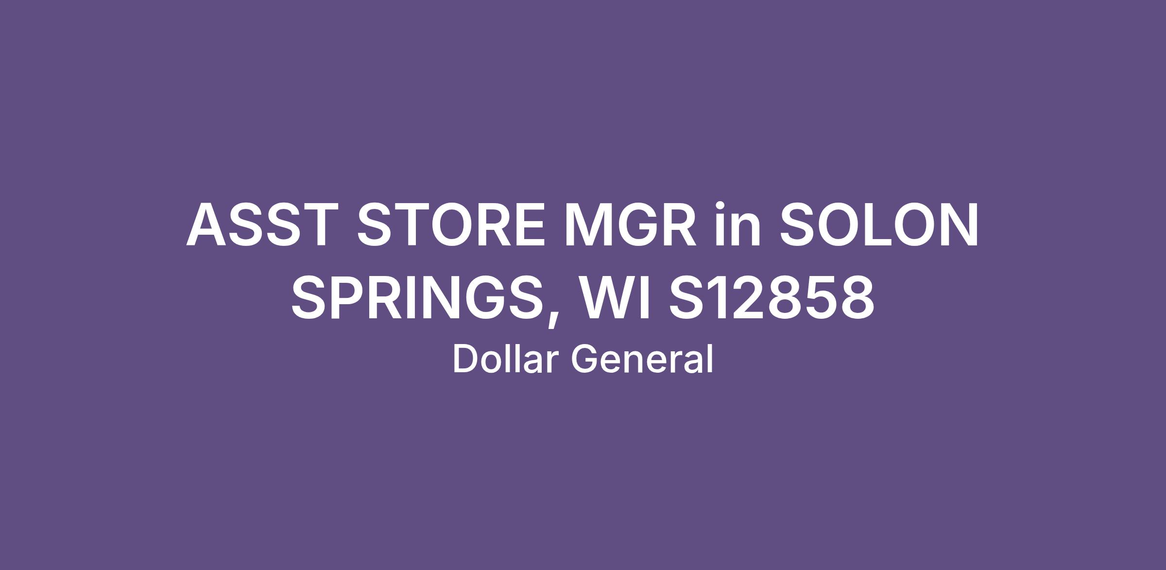 ASST STORE MGR in SOLON SPRINGS, WI S12858
