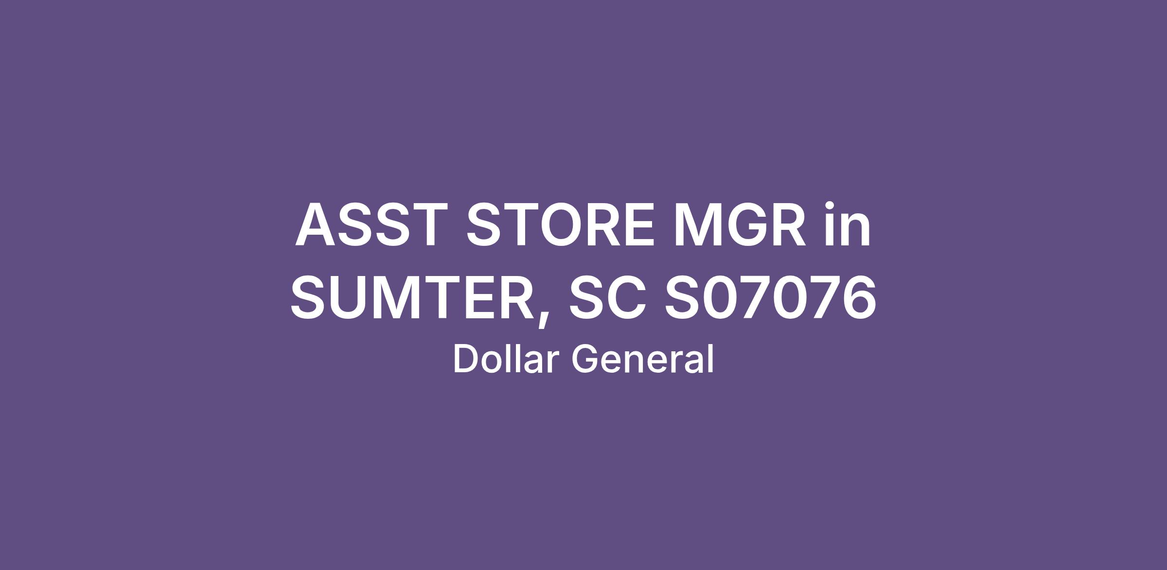 ASST STORE MGR in SUMTER, SC S07076