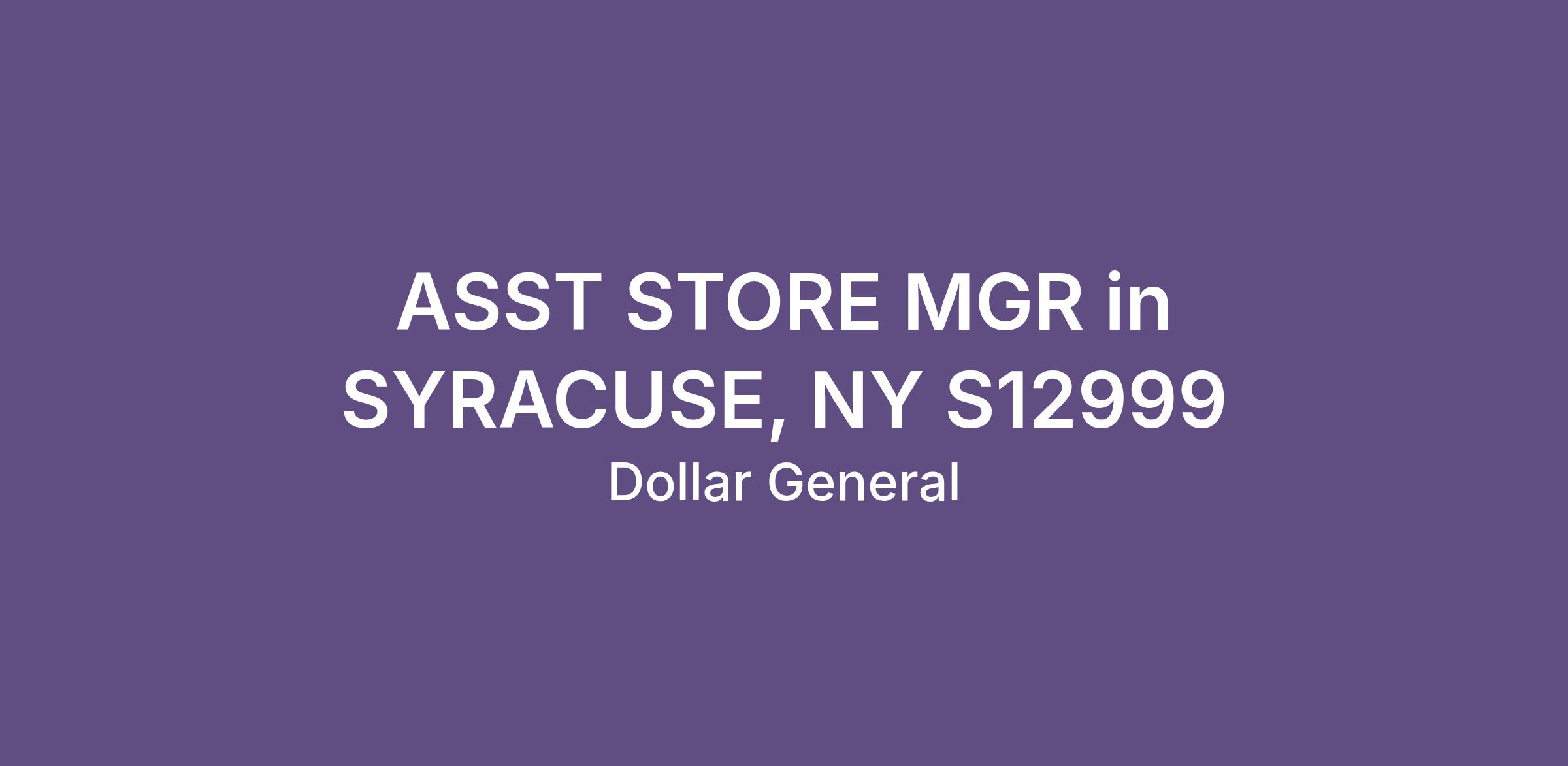 ASST STORE MGR in SYRACUSE, NY S12999