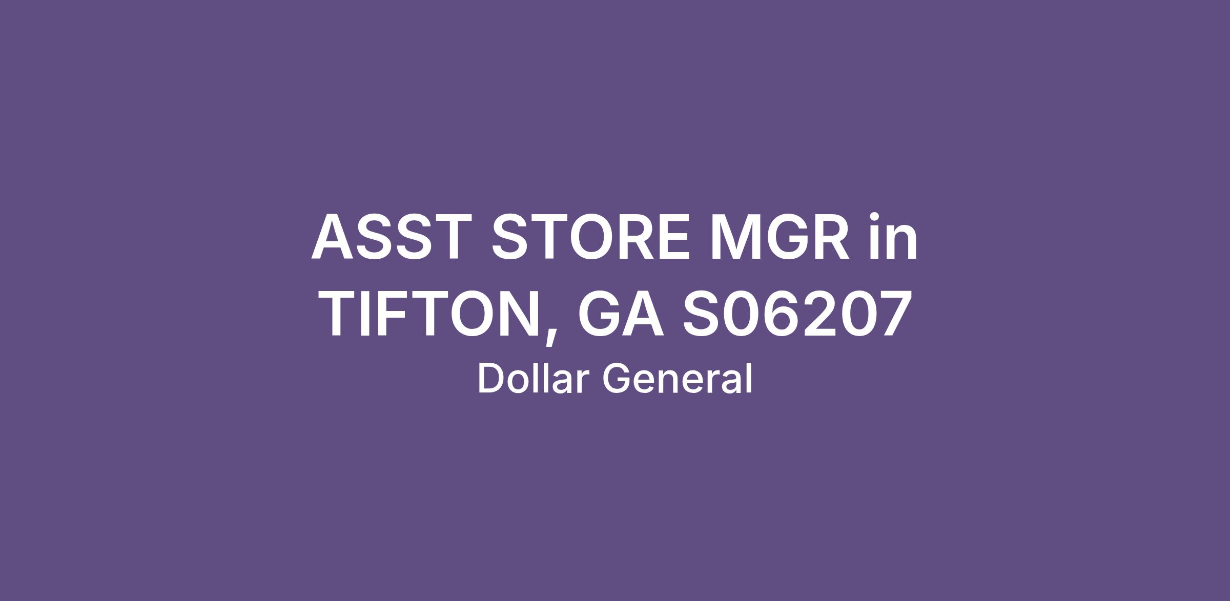 ASST STORE MGR in TIFTON, GA S06207