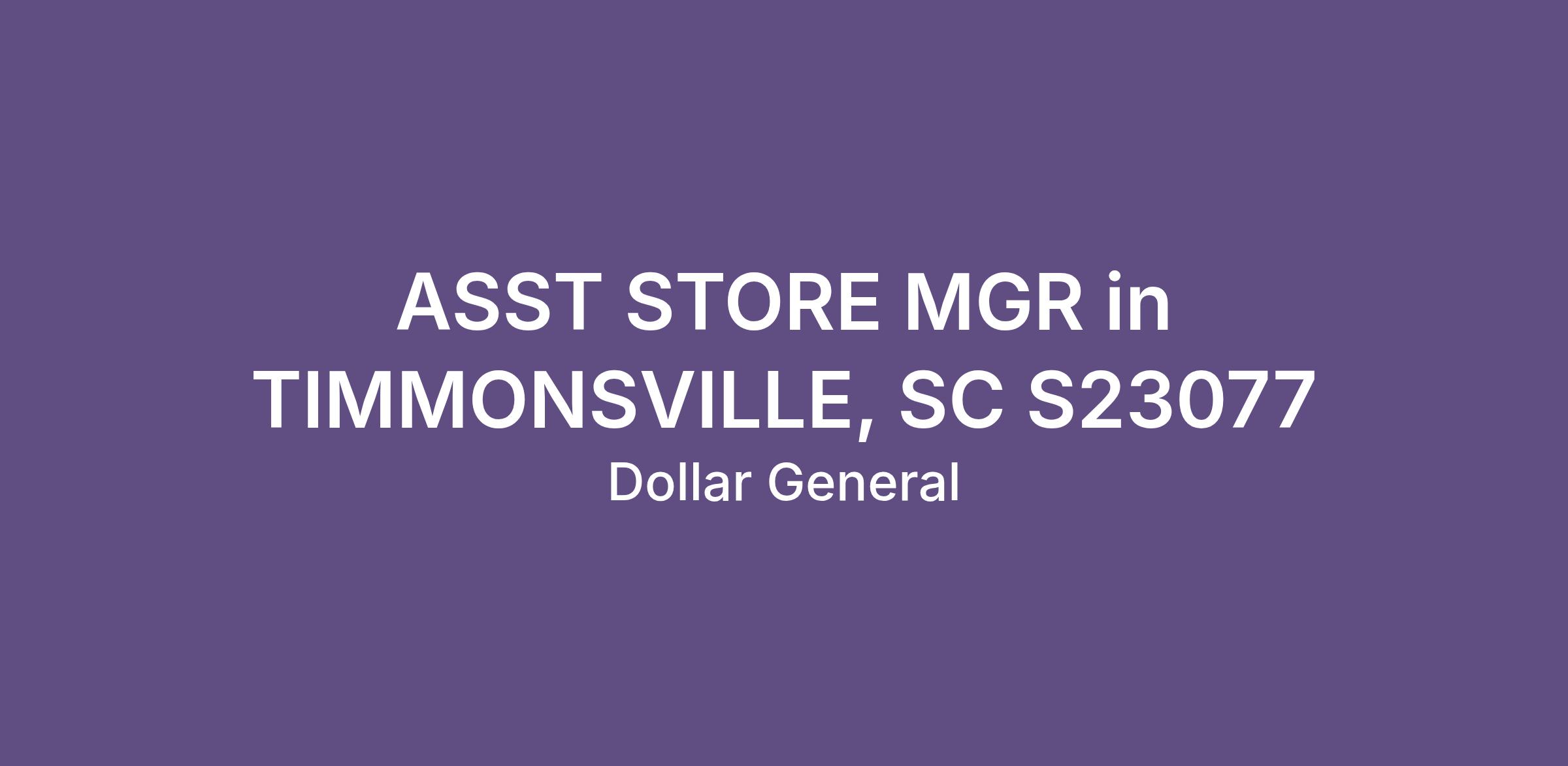 ASST STORE MGR in TIMMONSVILLE, SC S23077