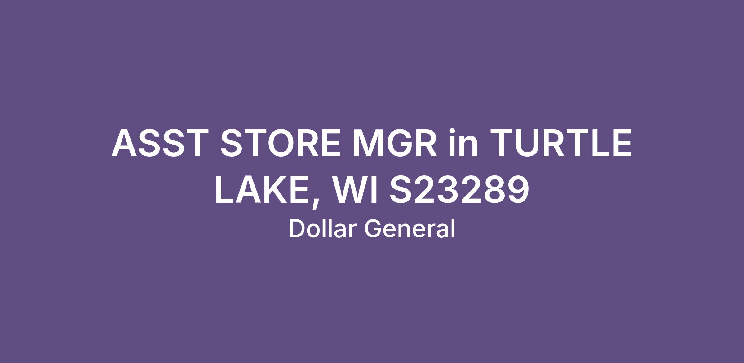 ASST STORE MGR in TURTLE LAKE, WI S23289