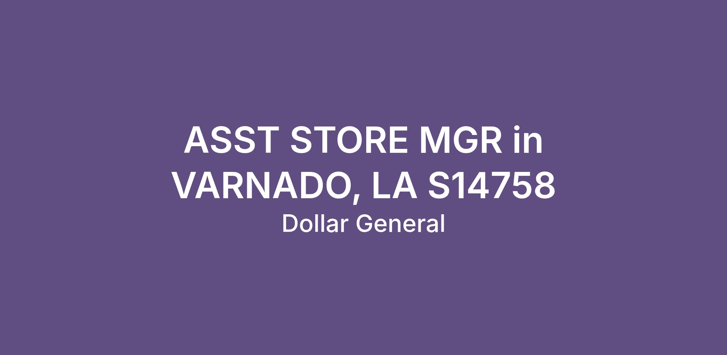 ASST STORE MGR in VARNADO, LA S14758