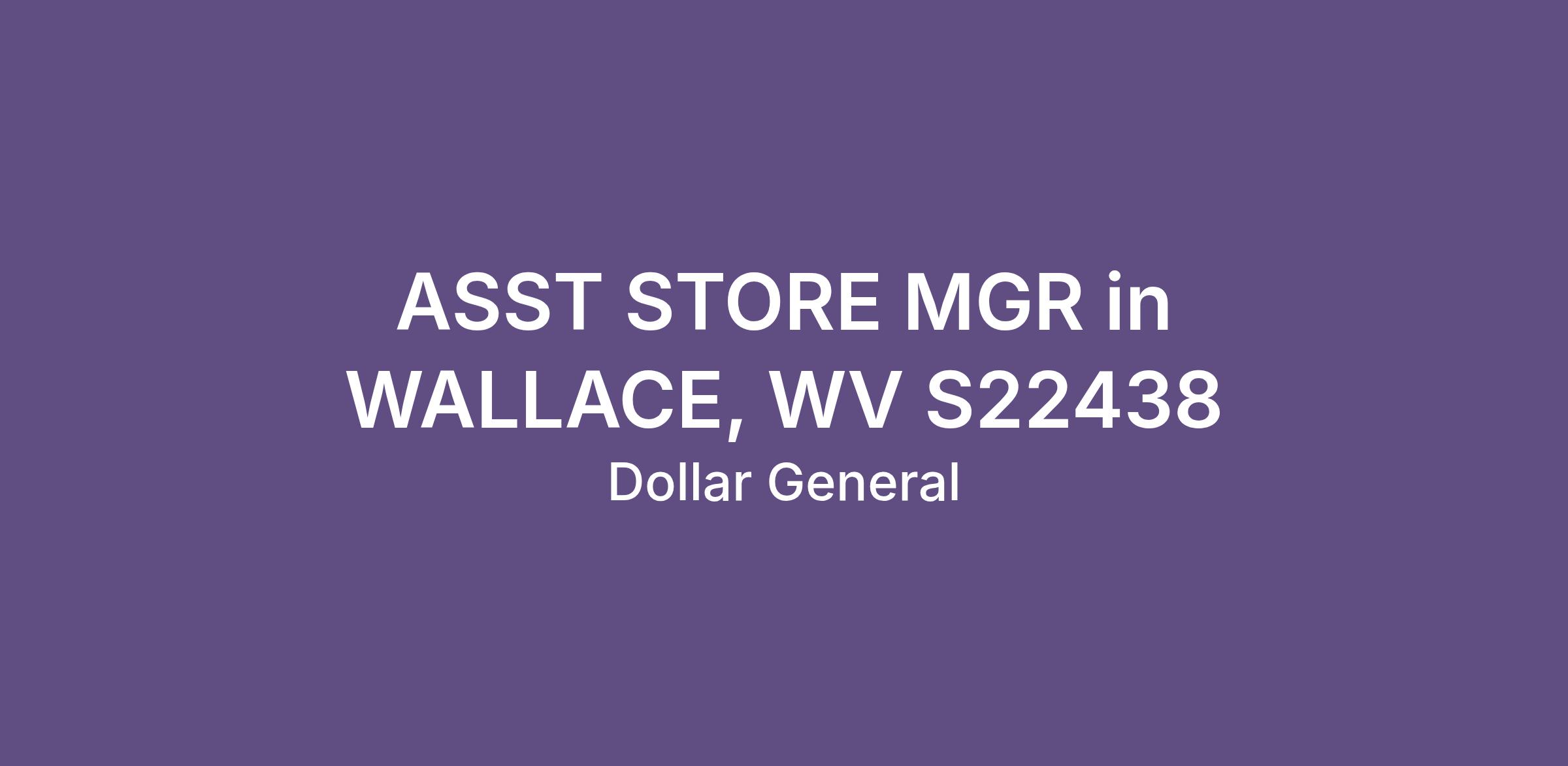 ASST STORE MGR in WALLACE, WV S22438