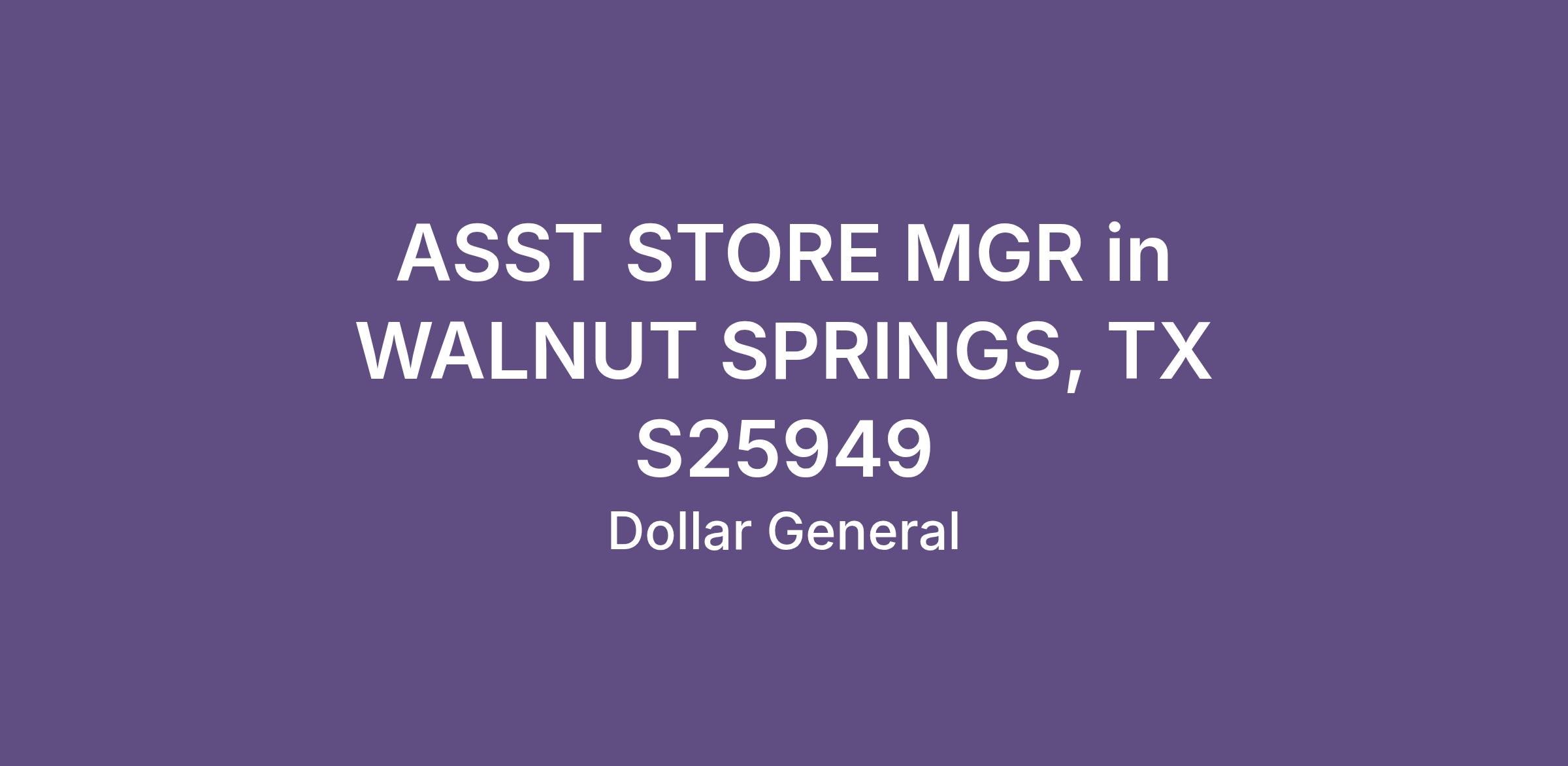 ASST STORE MGR in WALNUT SPRINGS, TX S25949