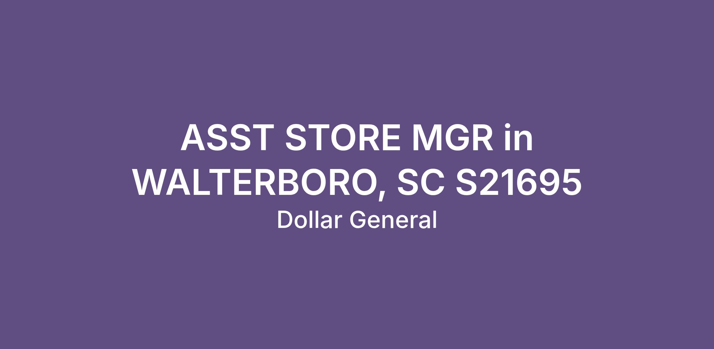 ASST STORE MGR in WALTERBORO, SC S21695