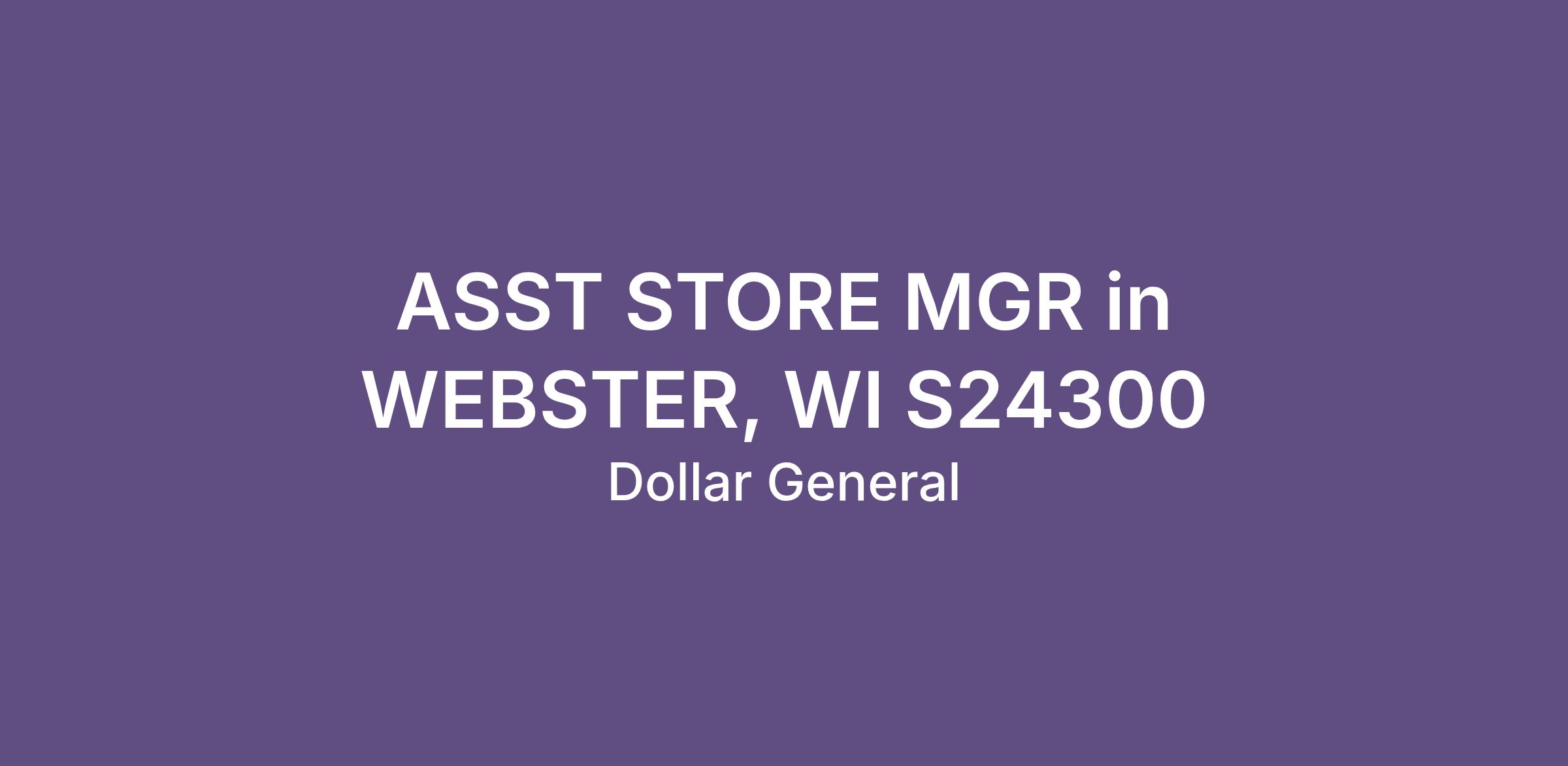 ASST STORE MGR in WEBSTER, WI S24300