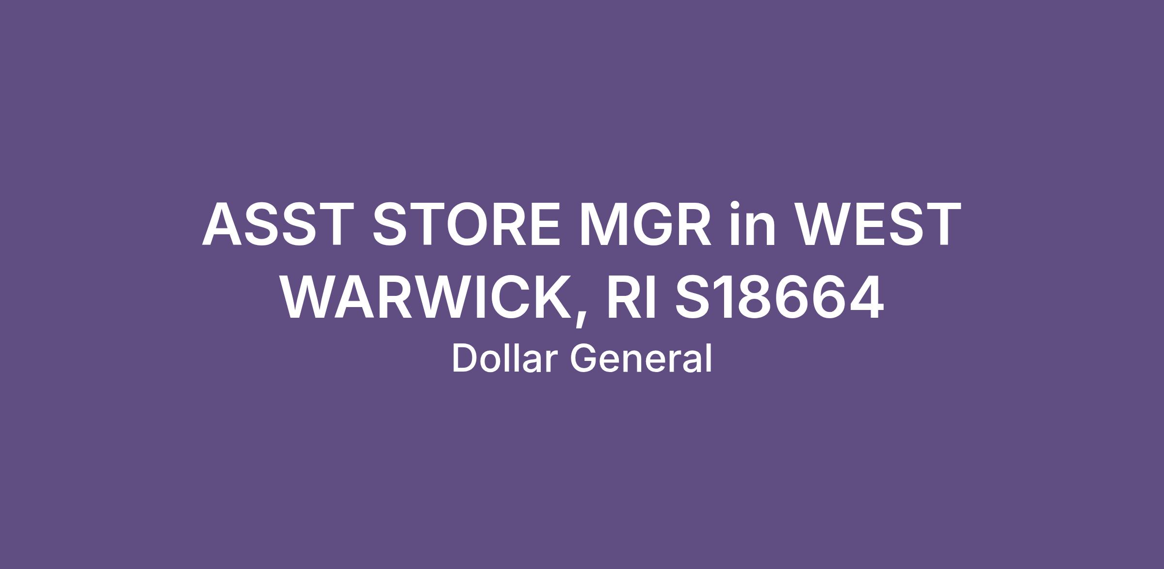 ASST STORE MGR in WEST WARWICK, RI S18664