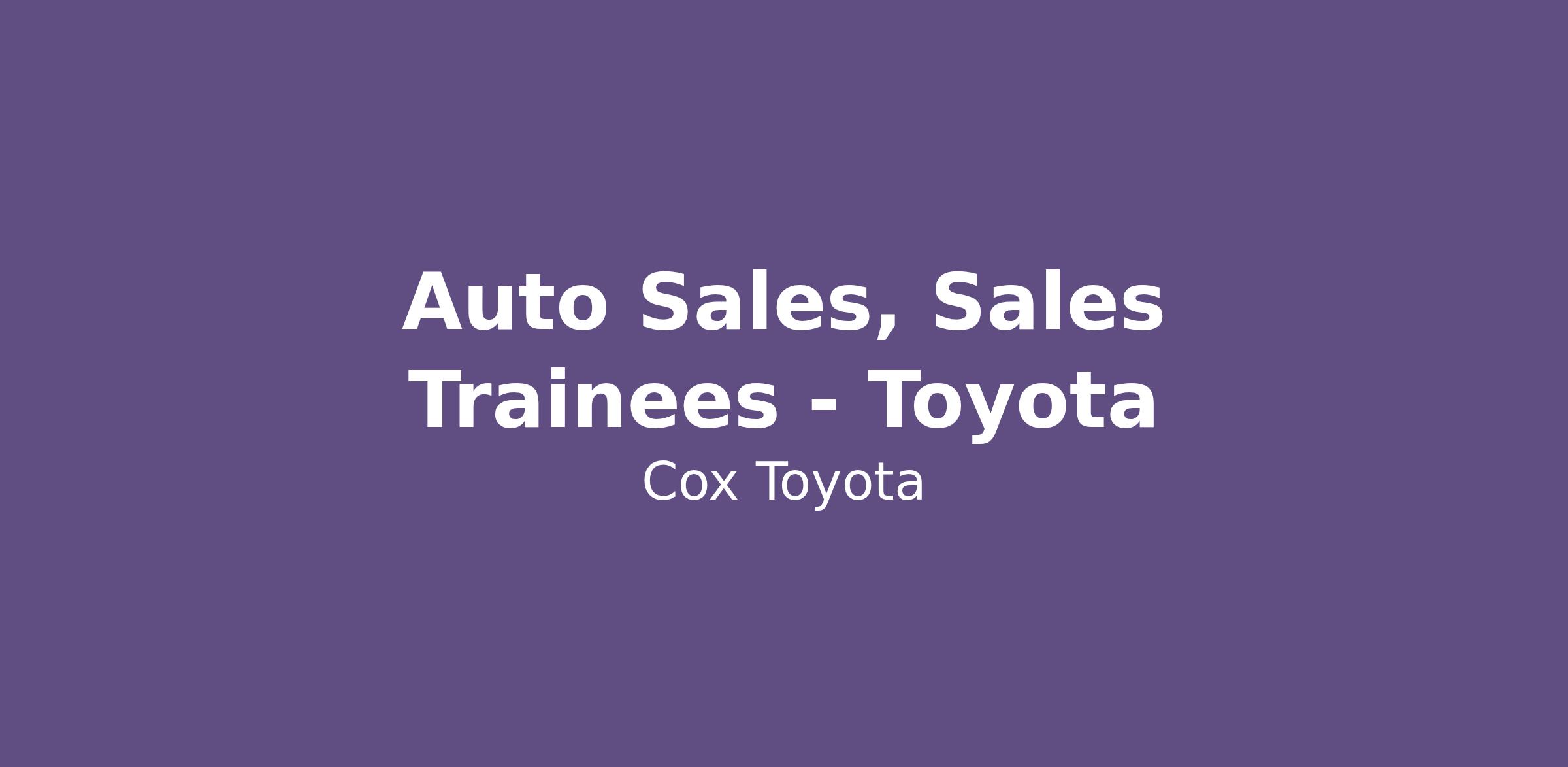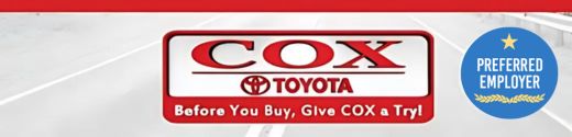 Cox Toyota in Burlington, NC is a GREAT place to have a rewarding career! We are BOOMING with business and need to hire Sales Consultants & Trainees to help customers purchase a vehicle. Our vehicles are TOP ranked in customer satisfaction and awesome to drive! YOU WILL BE SUCCESSFUL with EXCELLENT TRAINING and support from our Management Team.