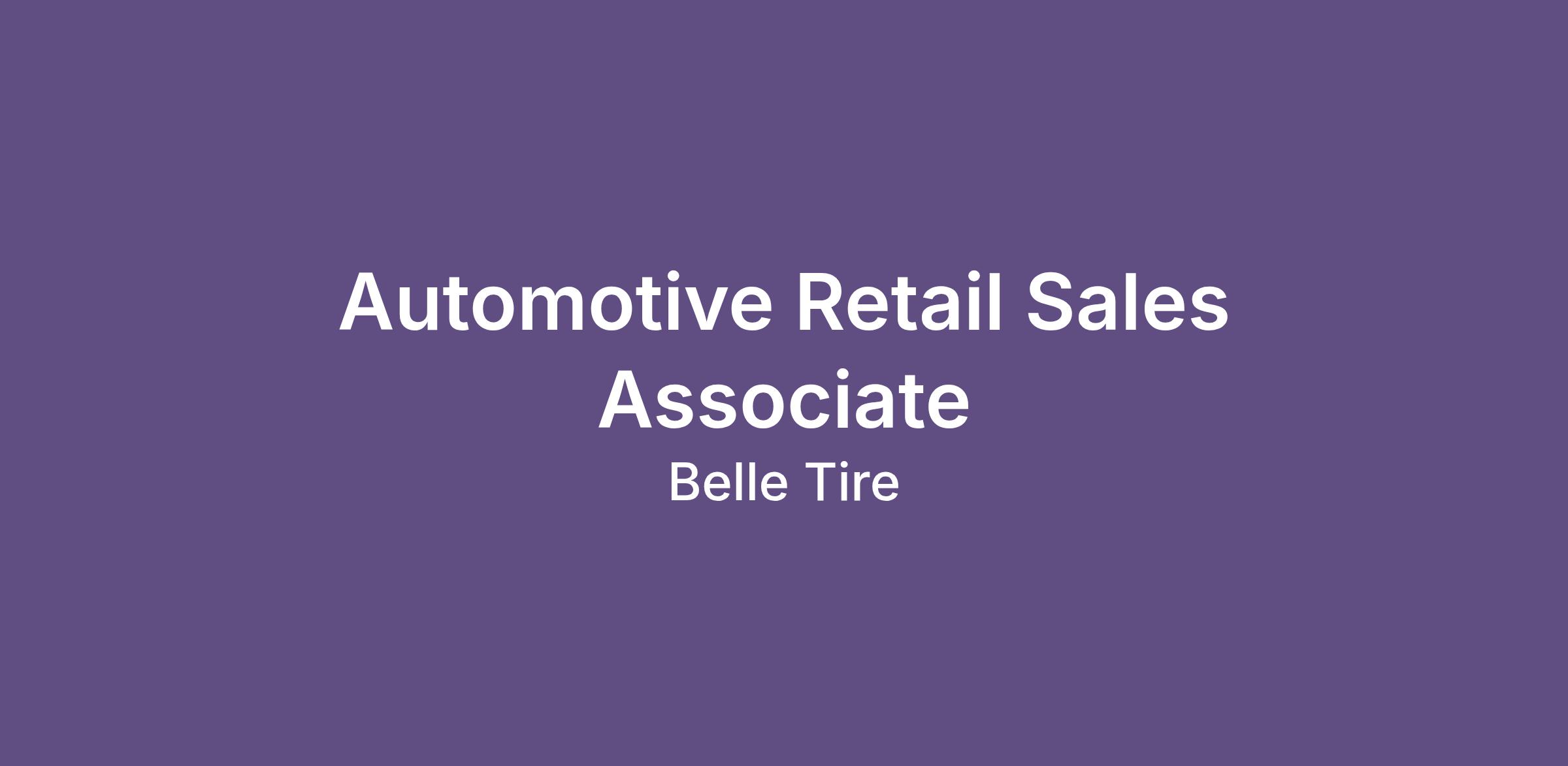 As a Sales Associate at Belle Tire, you play a vital role in delivering premium customer experiences and driving store performance. You focus on understanding customer needs, providing accurate solutions, and ensuring every customer receives fast, friendly, and trusted service. In this role, you support store operations by executing Belle Tire's 6-Step Sales Process, maintaining operational standards, and demonstrating teamwork.