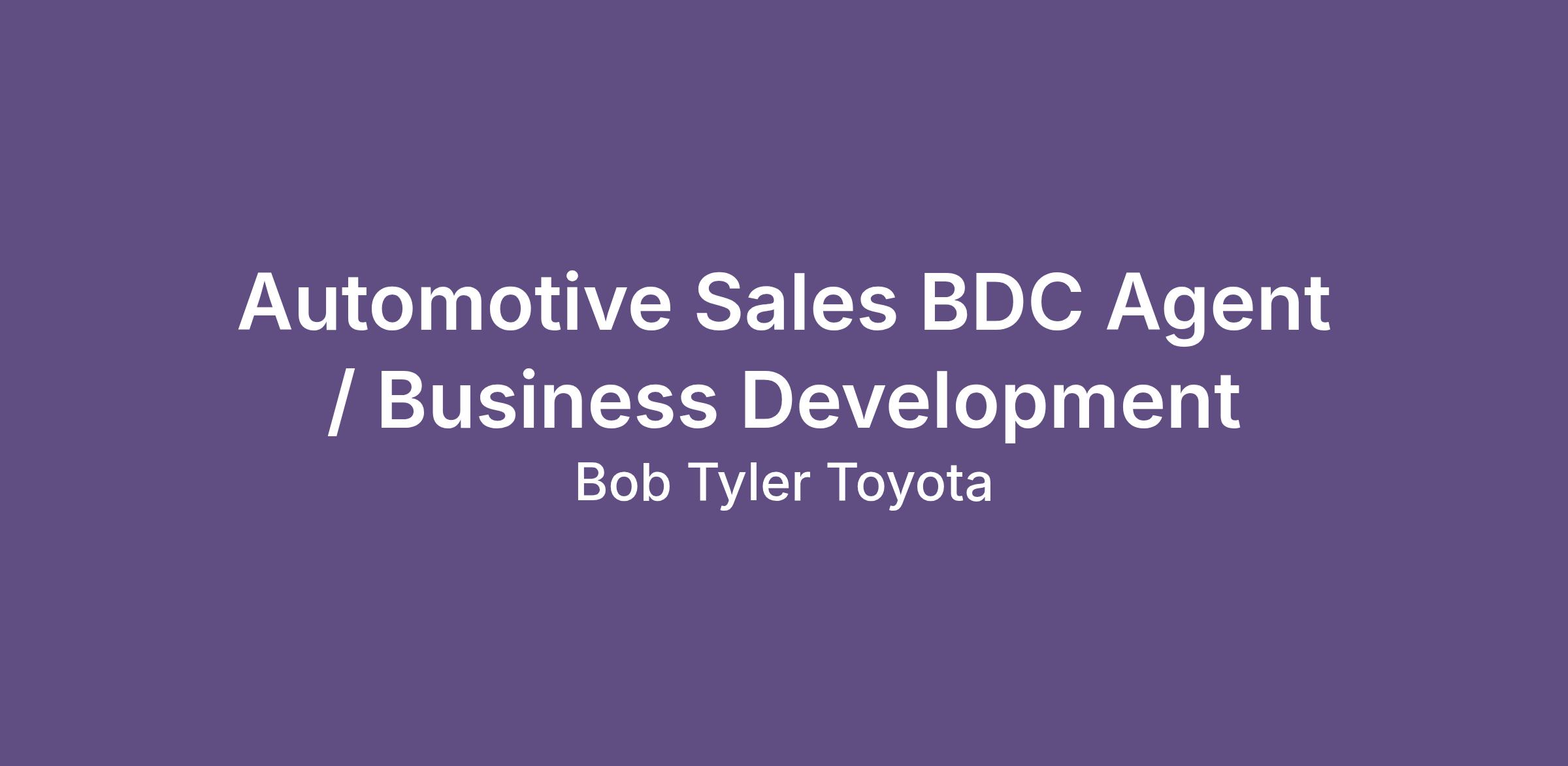 Bob Tyler Toyota needs to hire a BDC Sales Agent for our busy Business Development Center. We are looking for an enthusiastic, well spoken, hardworking individual with a great attention for detail.