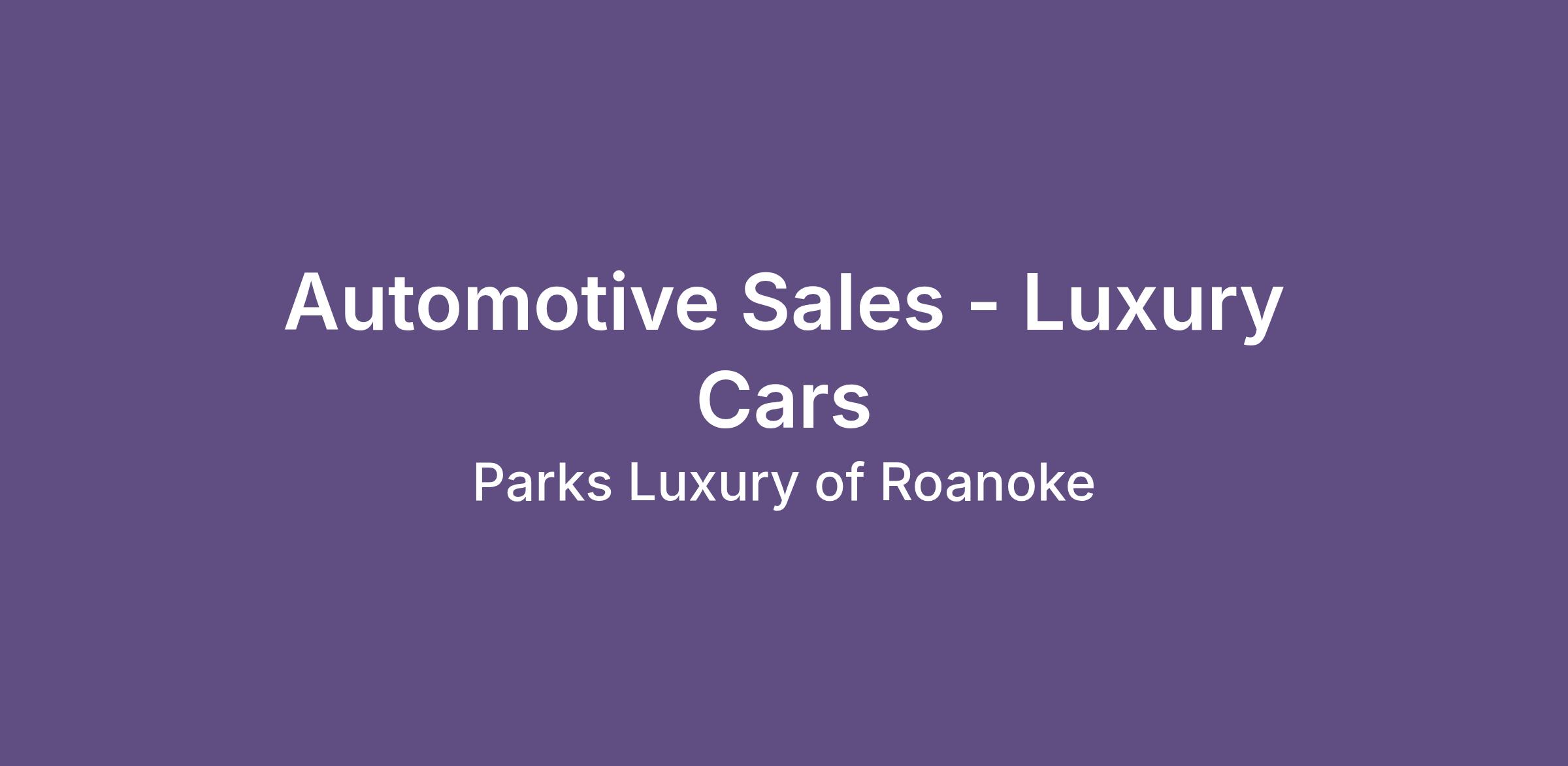 At Parks Luxury of Roanoke, sales are booming, and we are hiring now for Sales Consultants in order to keep up with consumer demand! Start a career where your efforts are appreciated and rewarded! We value our employees and invest in their success.