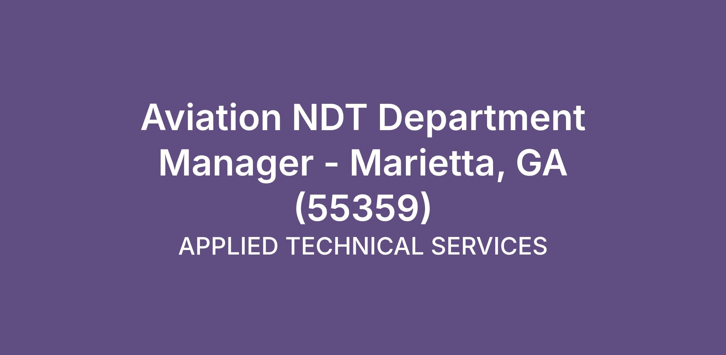 Summary: ATS is currently seeking an Aviation NDT Department Manager / Accountable Manager based out of Marietta, GA. This individual will help develop, oversee, and promote our aviation NDT business throughout the United States. This position will consist of personnel development (hiring, training, and certifying), account management, scheduling, maintaining equipment, reviewing reports, coordinating with other ATS team members, oversight of quality and safety practices of the department, and developing and nurturing customer relationships.