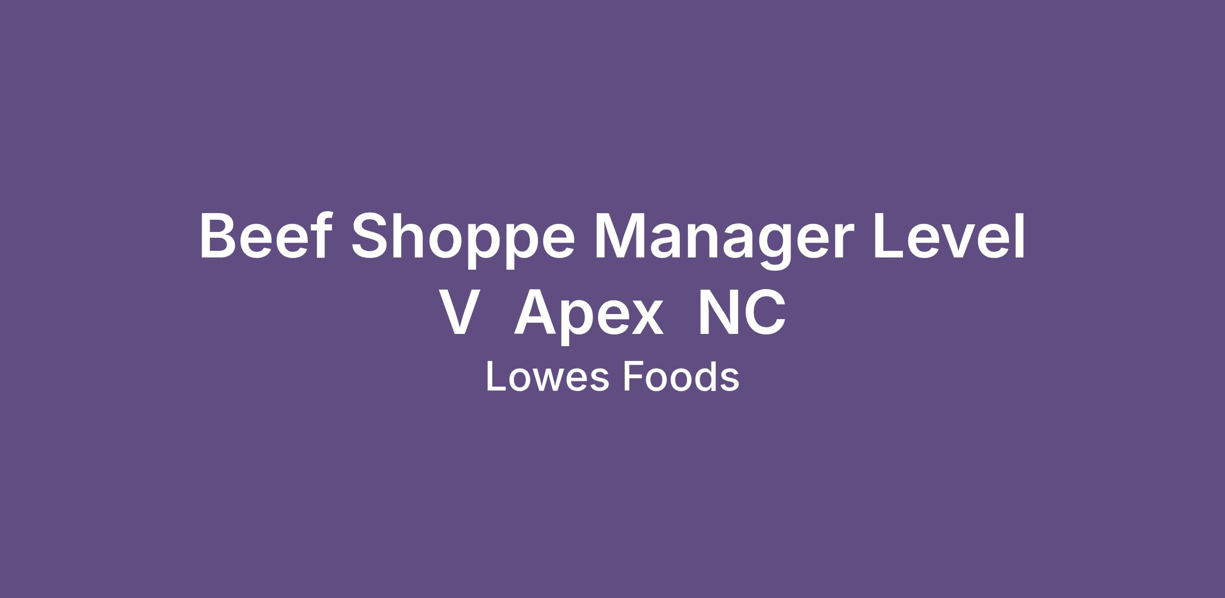 Beef Shoppe Manager Level V  Apex  NC