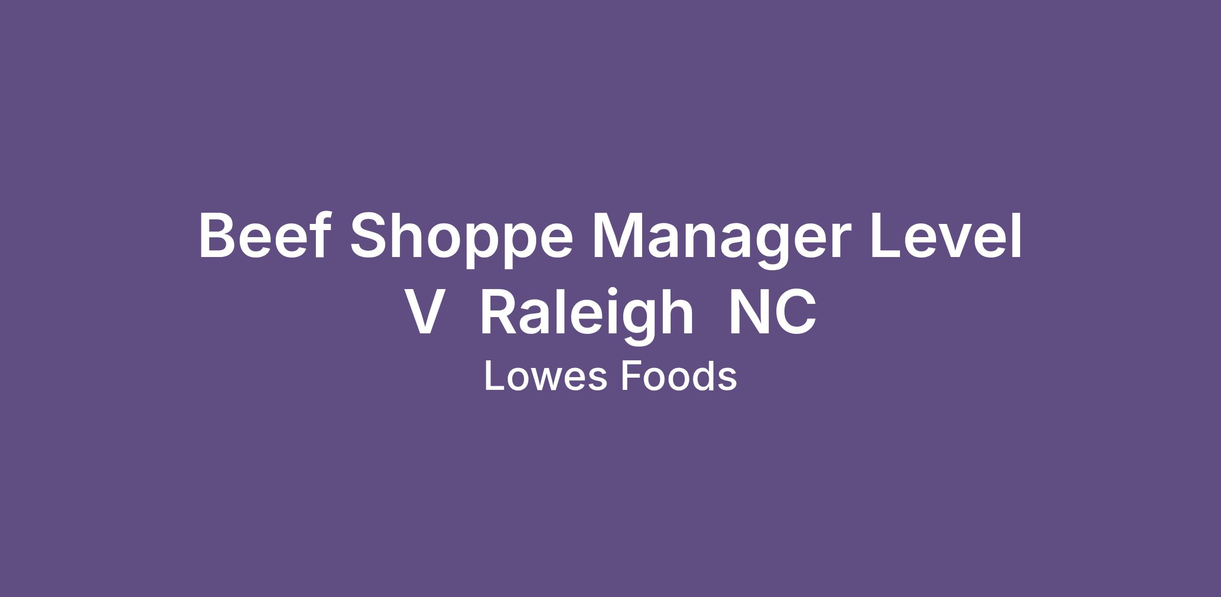 Beef Shoppe Manager Level V  Raleigh  NC