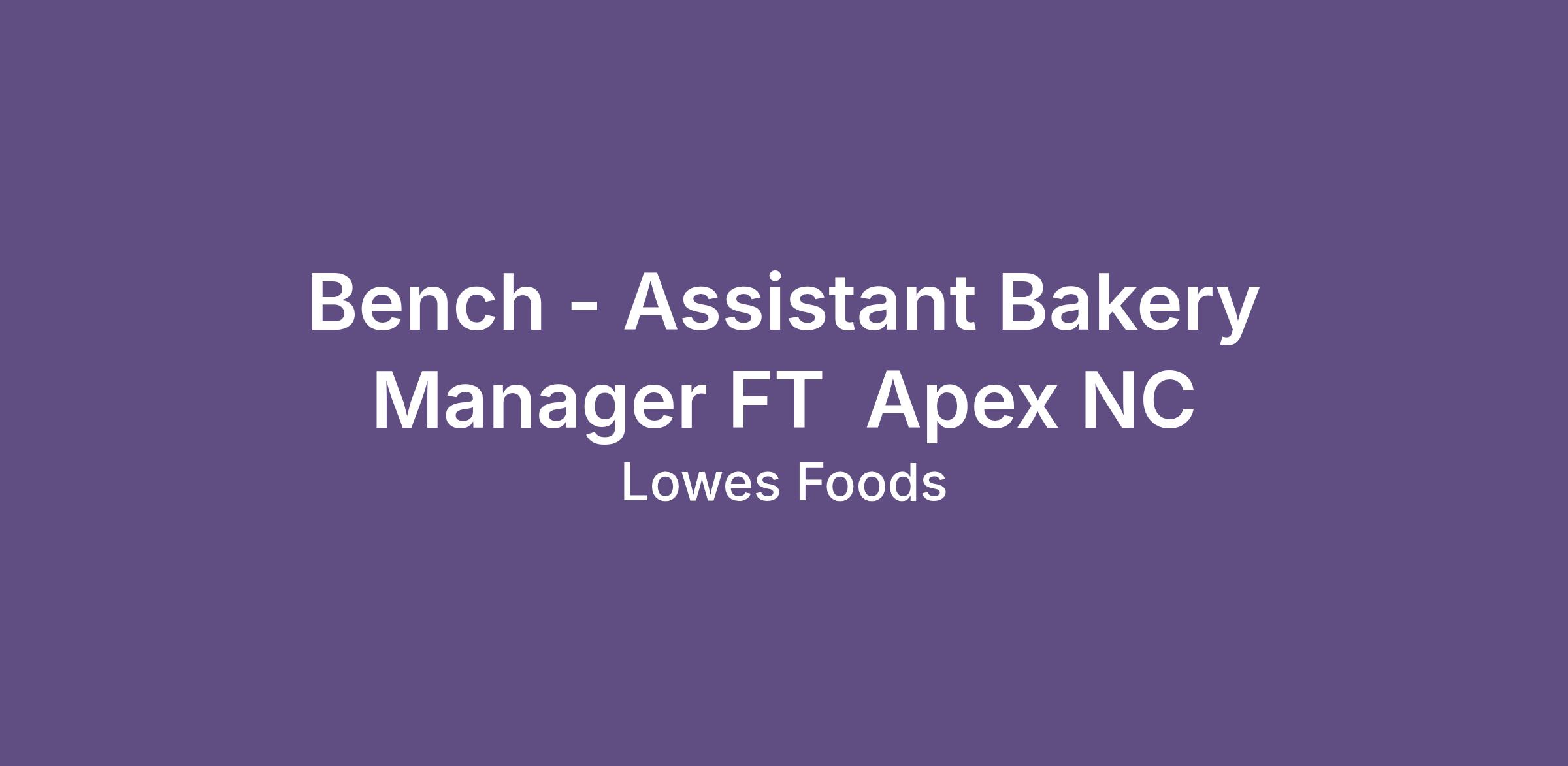 Bench - Assistant Bakery Manager FT  Apex NC