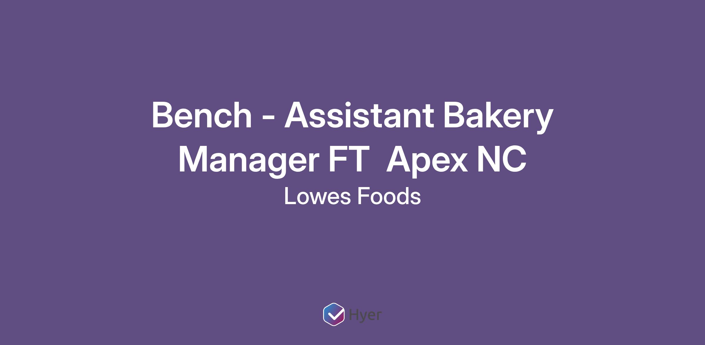 Bench - Assistant Bakery Manager FT  Apex NC
