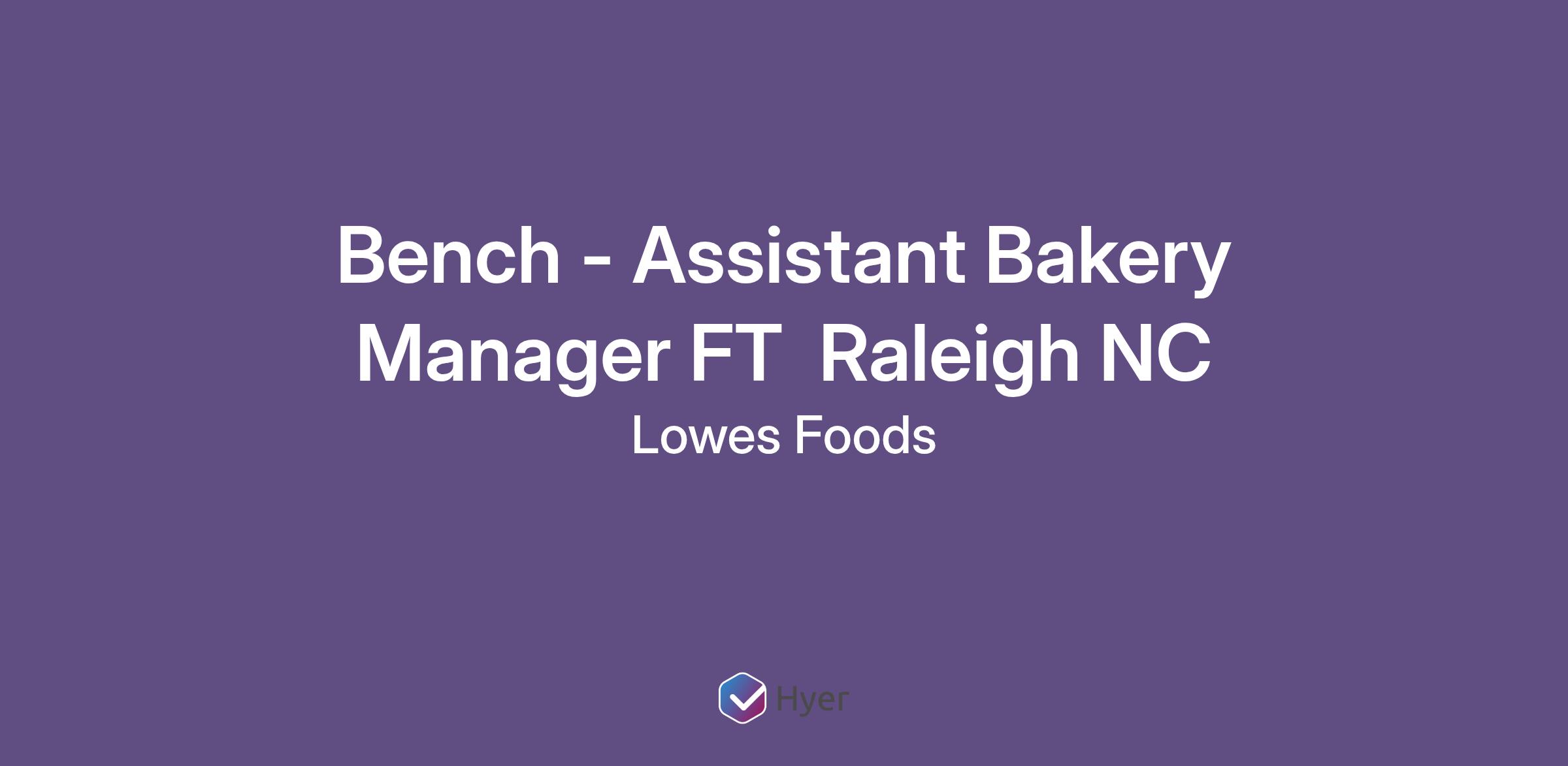 Bench - Assistant Bakery Manager FT  Raleigh NC