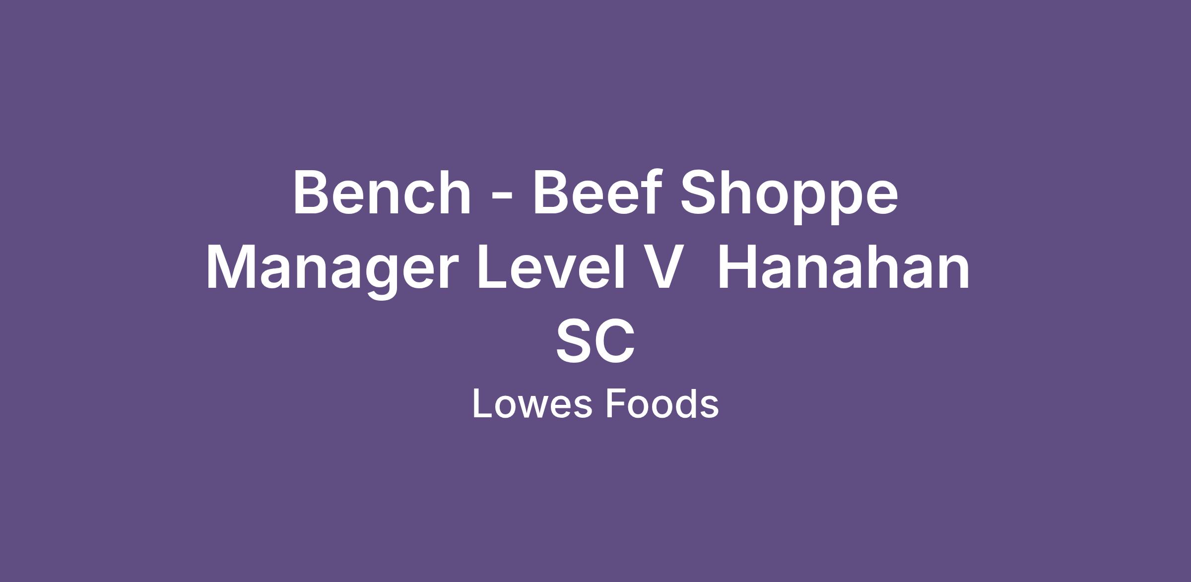 Bench - Beef Shoppe Manager Level V  Hanahan  SC