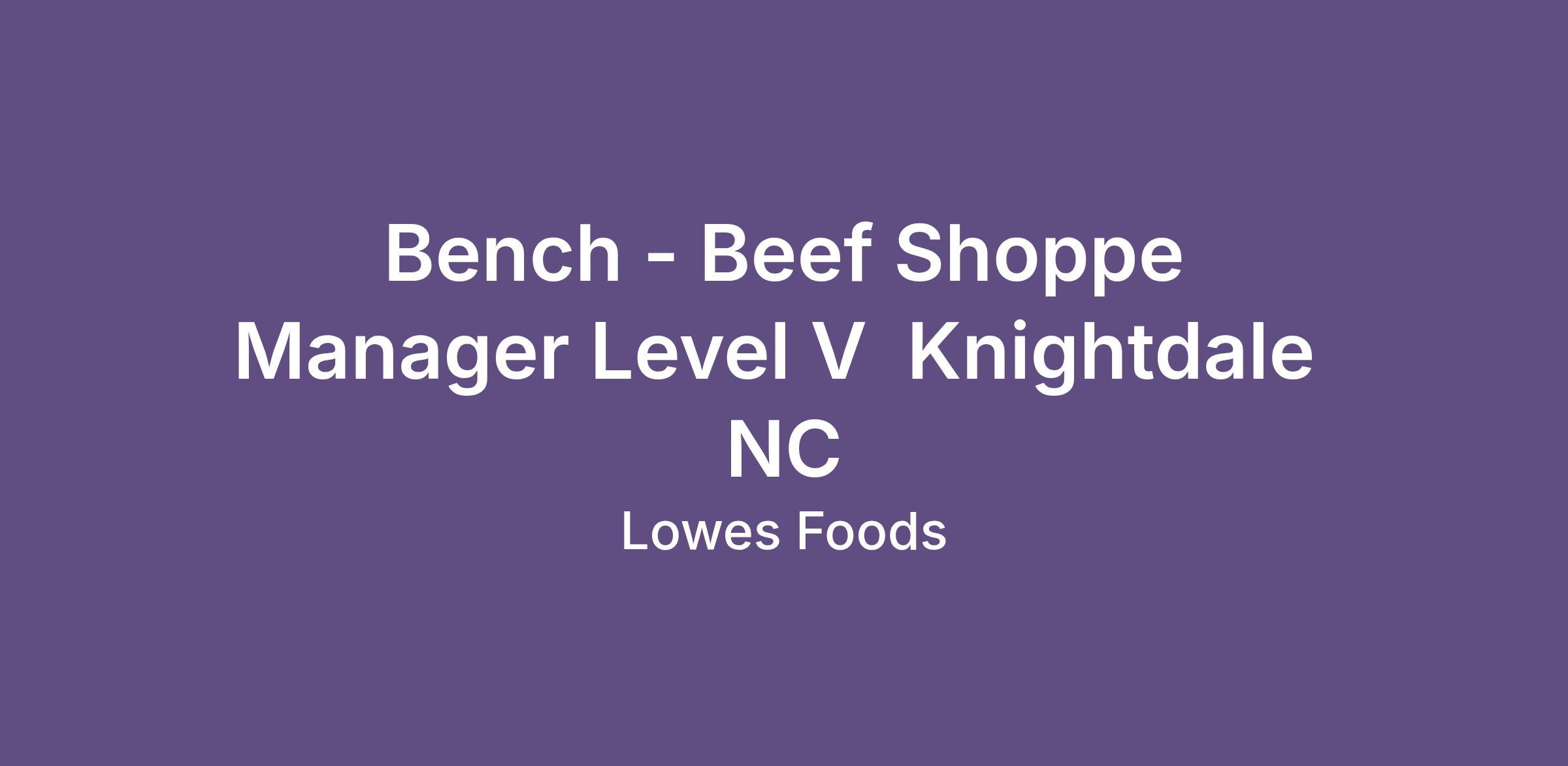 Bench - Beef Shoppe Manager Level V  Knightdale  NC