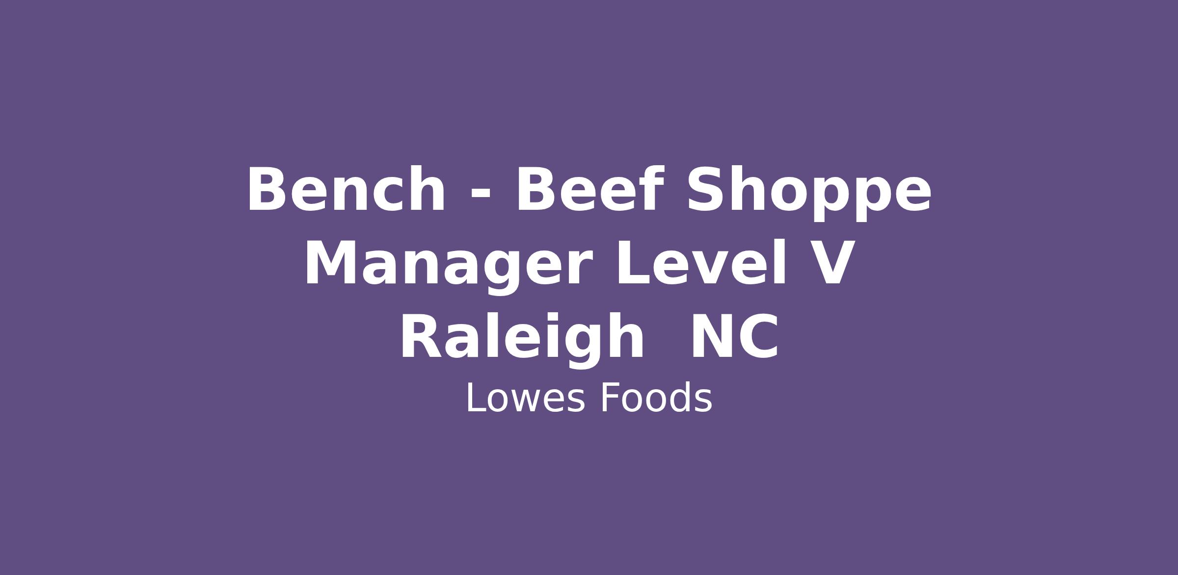 Bench - Beef Shoppe Manager Level V  Raleigh  NC