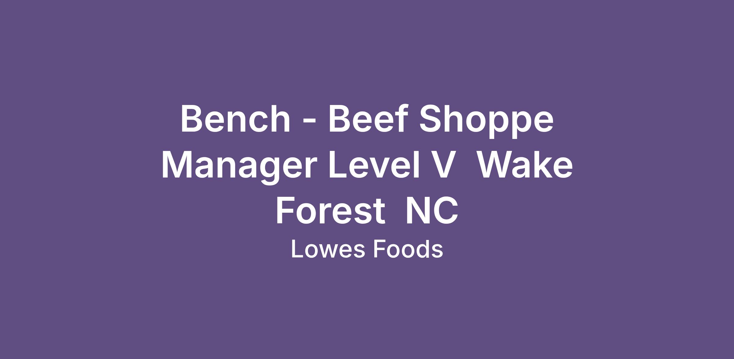Bench - Beef Shoppe Manager Level V  Wake Forest  NC