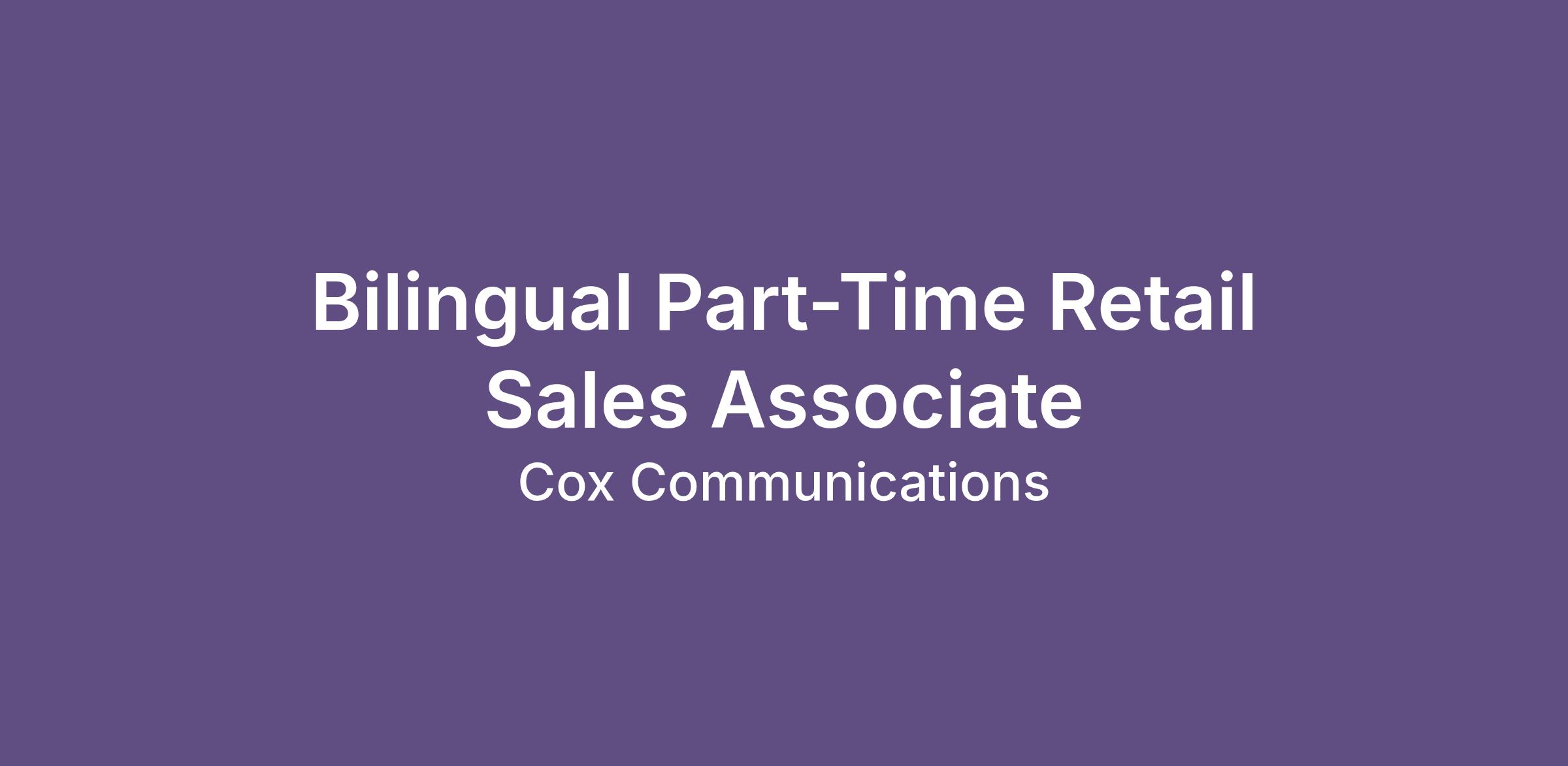 Part-Time Retail Sales Associate who creates those experiences; someone who connects easily with others and can drive sales while making customers feel special. So, if you love to learn, then take your newfound knowledge and create mind-blowing customer satisfaction; you're right where you need to be. Keep reading to learn more about this opportunity to connect customers with Cox's game-changing technology, products,