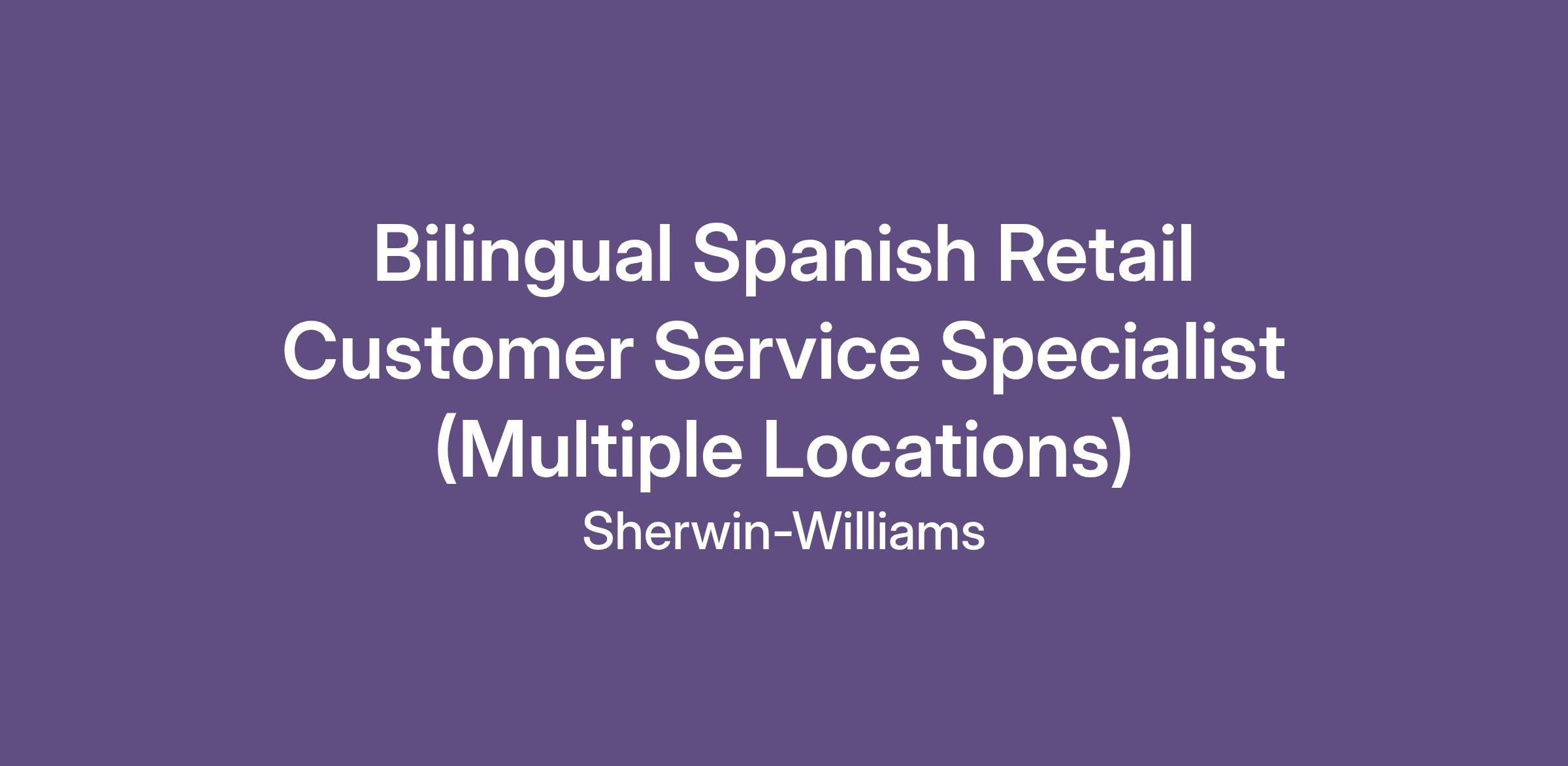 Bilingual Spanish Retail Customer Service Specialist (Multiple Locations)