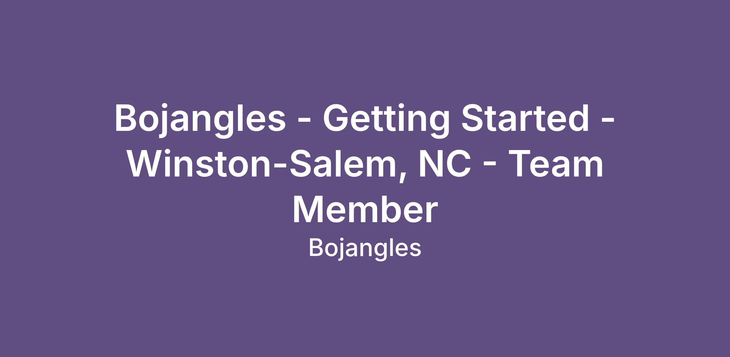 Bojangles - Getting Started - Winston-Salem, NC - Team Member