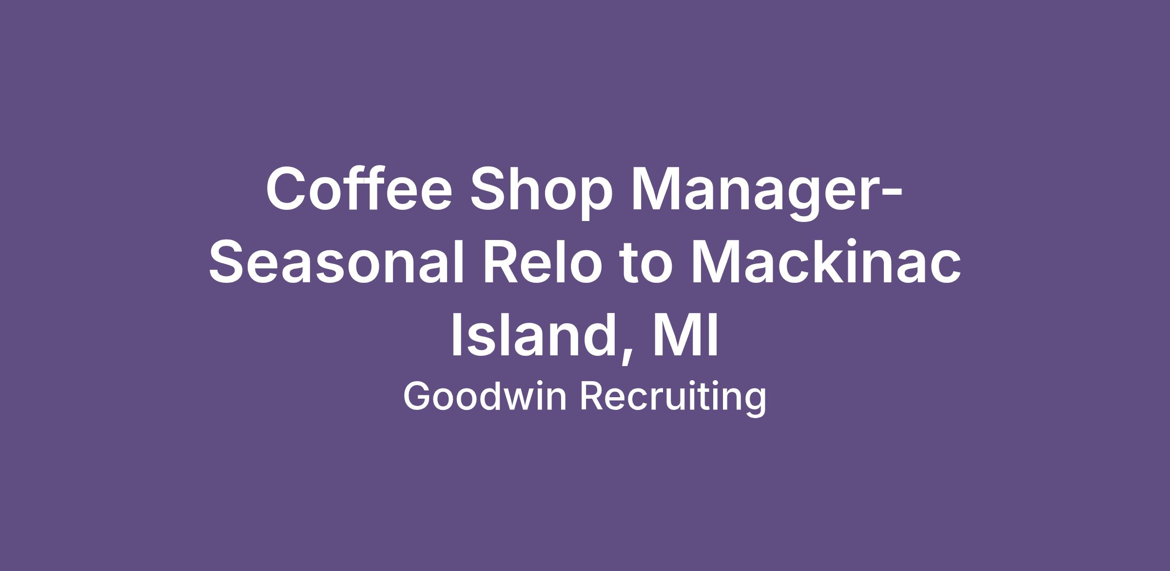 Searching for an experienced Coffee Shop Manager/Barista Supervisor that has experience managing beverage outlets, preferably from a resort setting. This great opportunity is for a beautiful Resort on a very popular Island in Northern Michigan. Seasonal position that includes free housing and Industry leading culture and benefits.