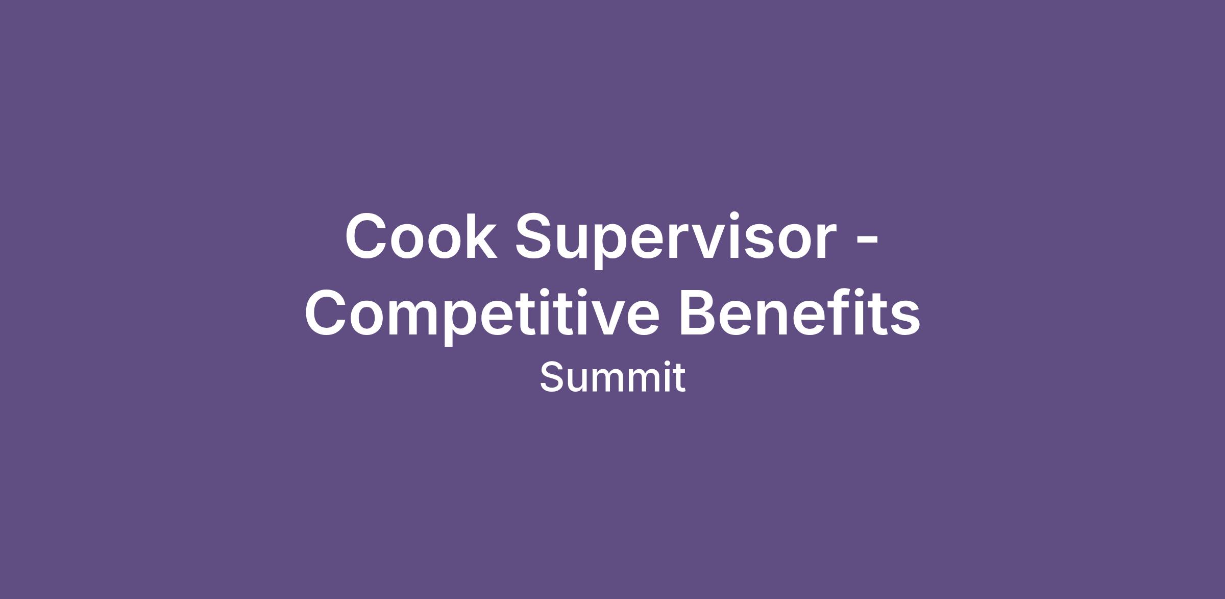 Cook Supervisor - Competitive Benefits