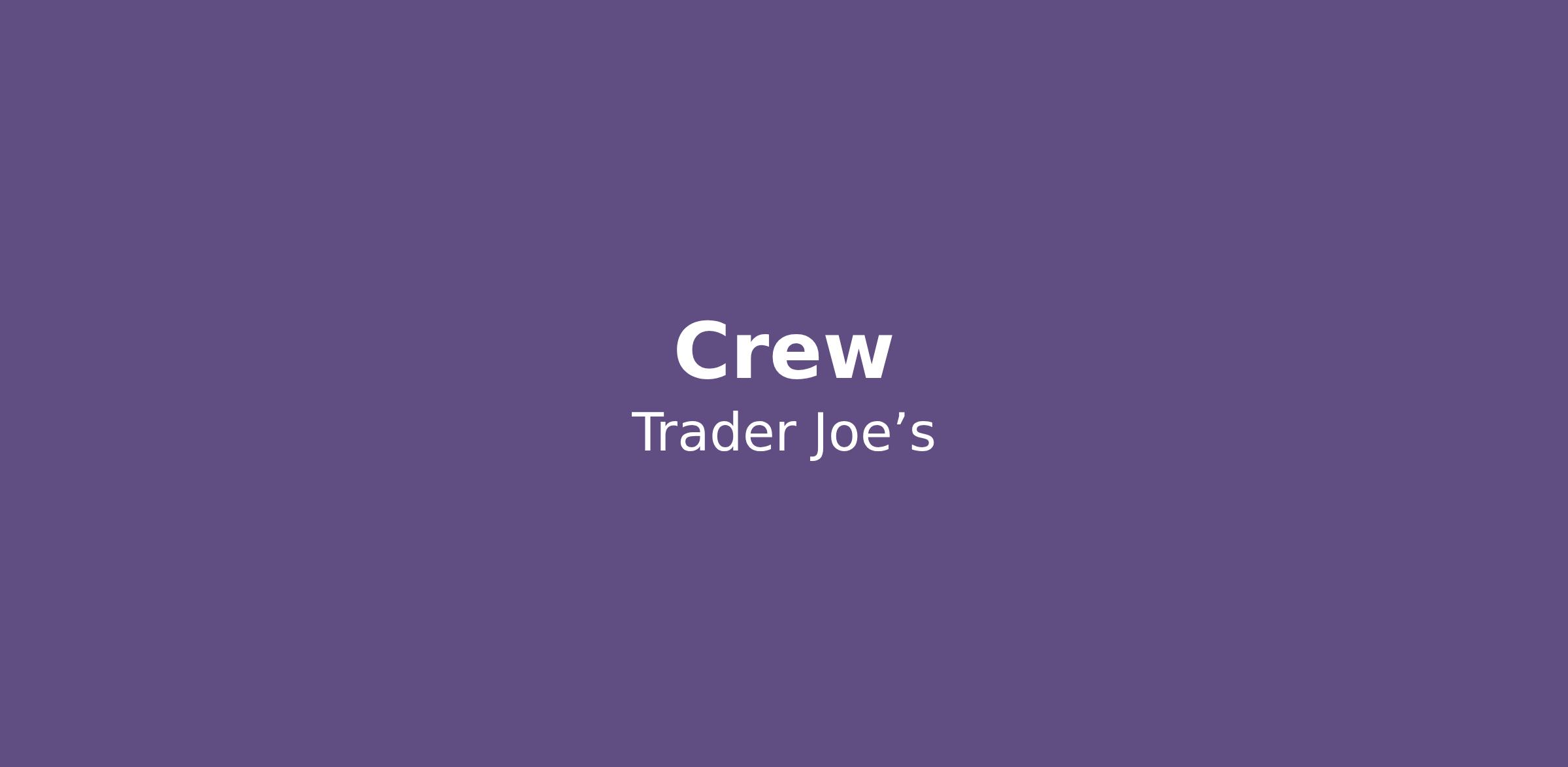 Trader Joe's is an equal-opportunity employer and is committed to hiring a diverse Crew.