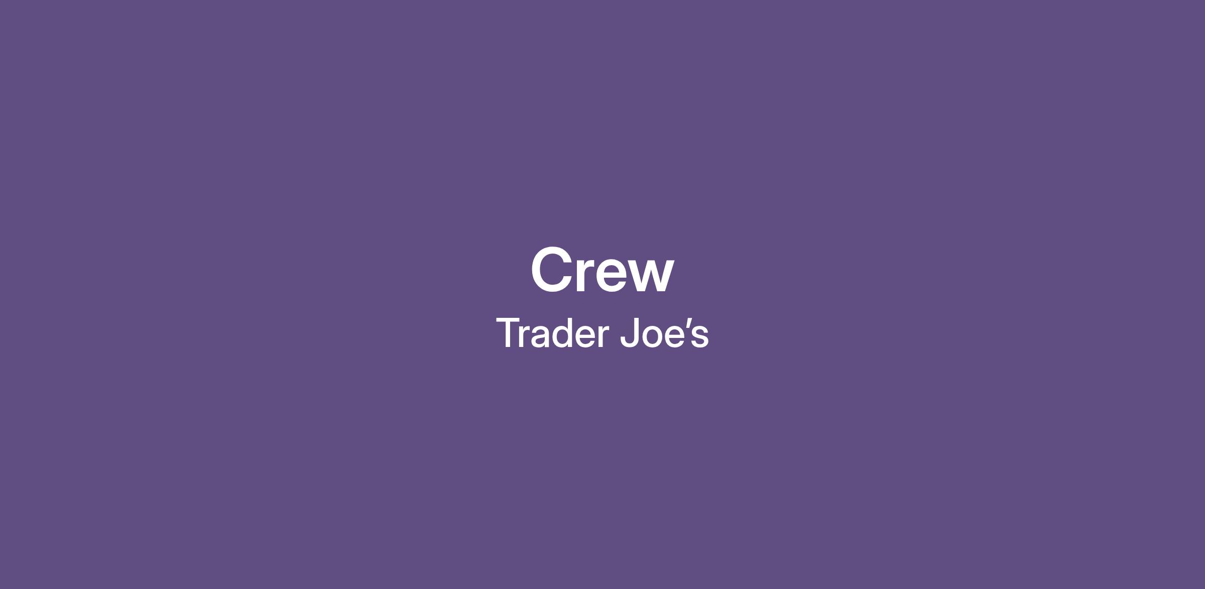 Trader Joe's is an equal-opportunity employer and is committed to hiring a diverse Crew.