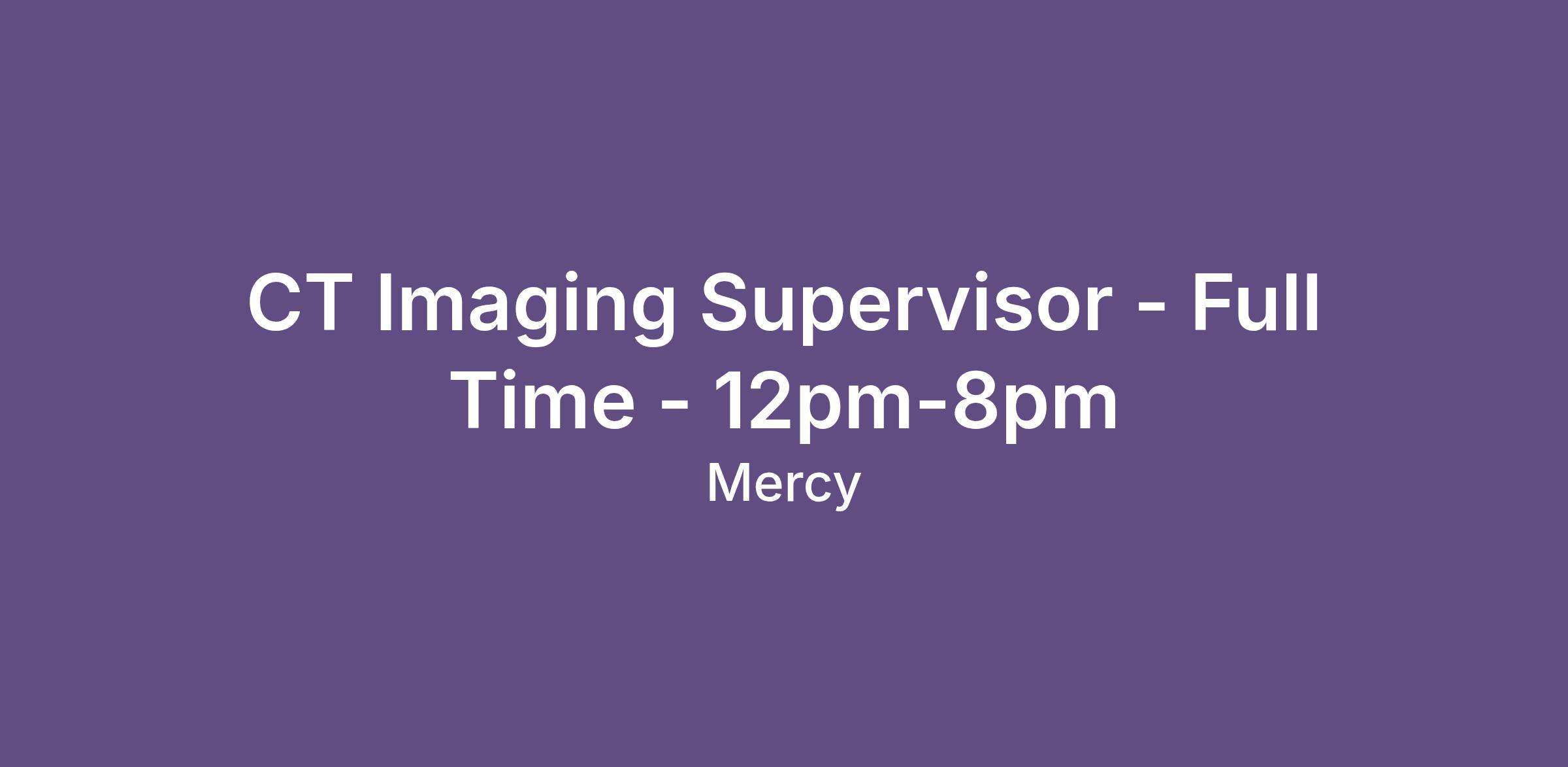 keyword(s): CT, CT scan, xray, radiology, supervisor, CT Supervisor, CT Imaging Supervisor, Radiology Supervisor, Imaging Services Supervisor, Diagnostic Imaging Supervisor, CT Technologist Supervisor, Mercy, Hospital, Washington, Missouri, Imagining, computed tomography, imaging procedure, leadership, staff supervision, workflow management, leadership