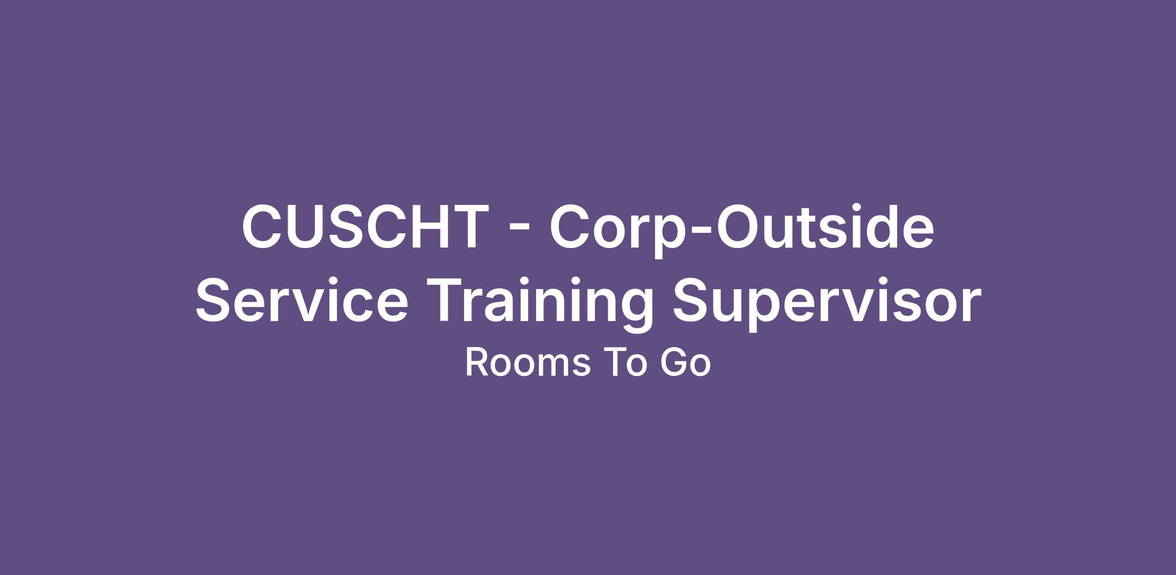 Department: Outside Service Job Code: OSA009 Salary Plan/Grade: 06 FLSA Status: Exempt/ProfessionalPosition Summary: The Training Supervisor will have advanced knowledge of all aspects and conditions concerning the At-Home service provision and Vehicle responsibilities for Rooms To Go. The training supervisor must have a complete knowledge of furniture repair techniques and be able to provide training in a coherent manner. The Training Supervisor will be responsible for providing New Hire, Safety, and Advanced training to the field supervisors and service technicians within their region and occasionally other regions.
