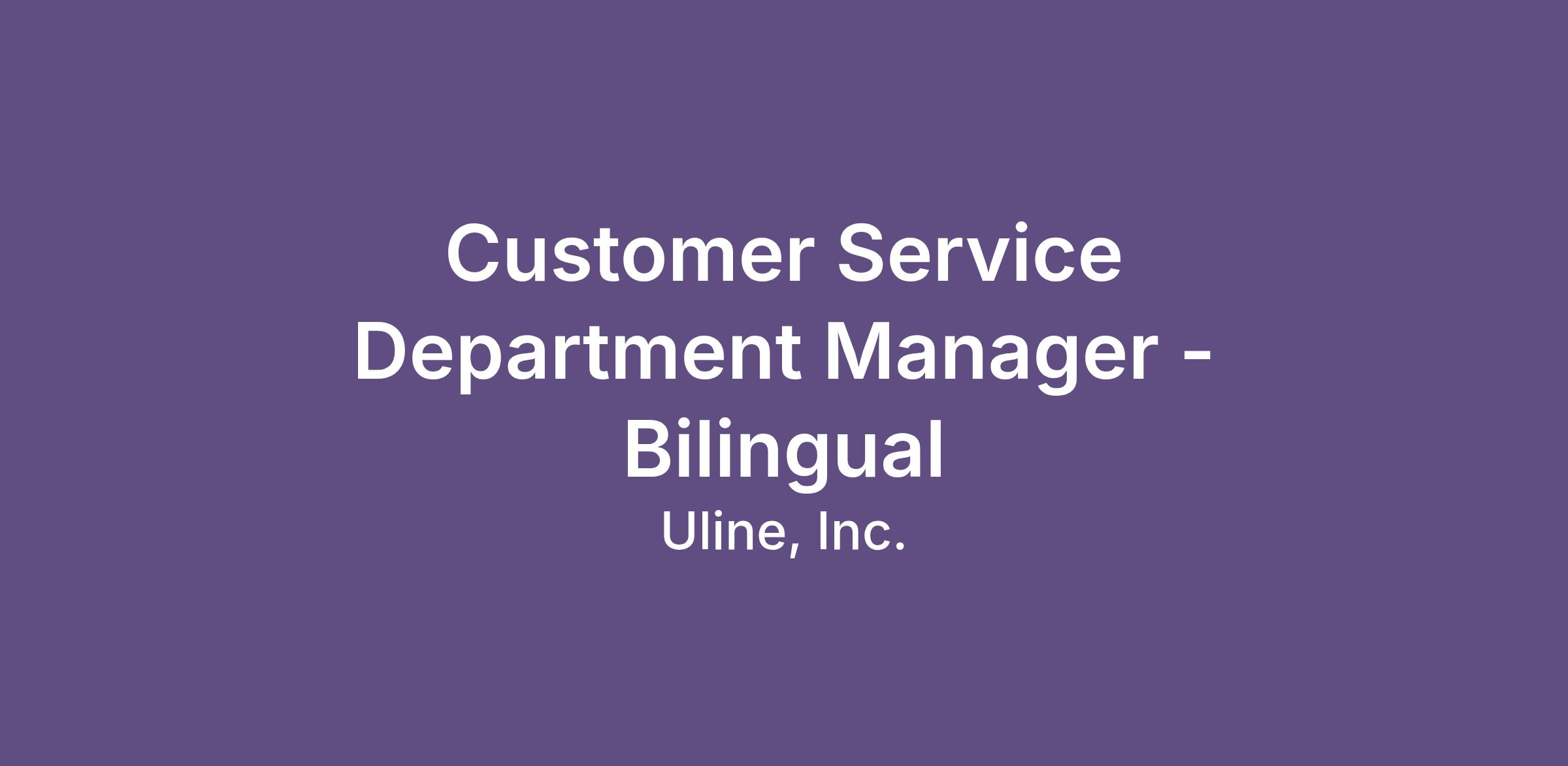 Fast, friendly, and customer-focused - that’s what makes Uline’s customer service legendary! As a Bilingual Customer Service Department Manager, continue this legacy by empowering our teams to deliver the exceptional experience our customers love.