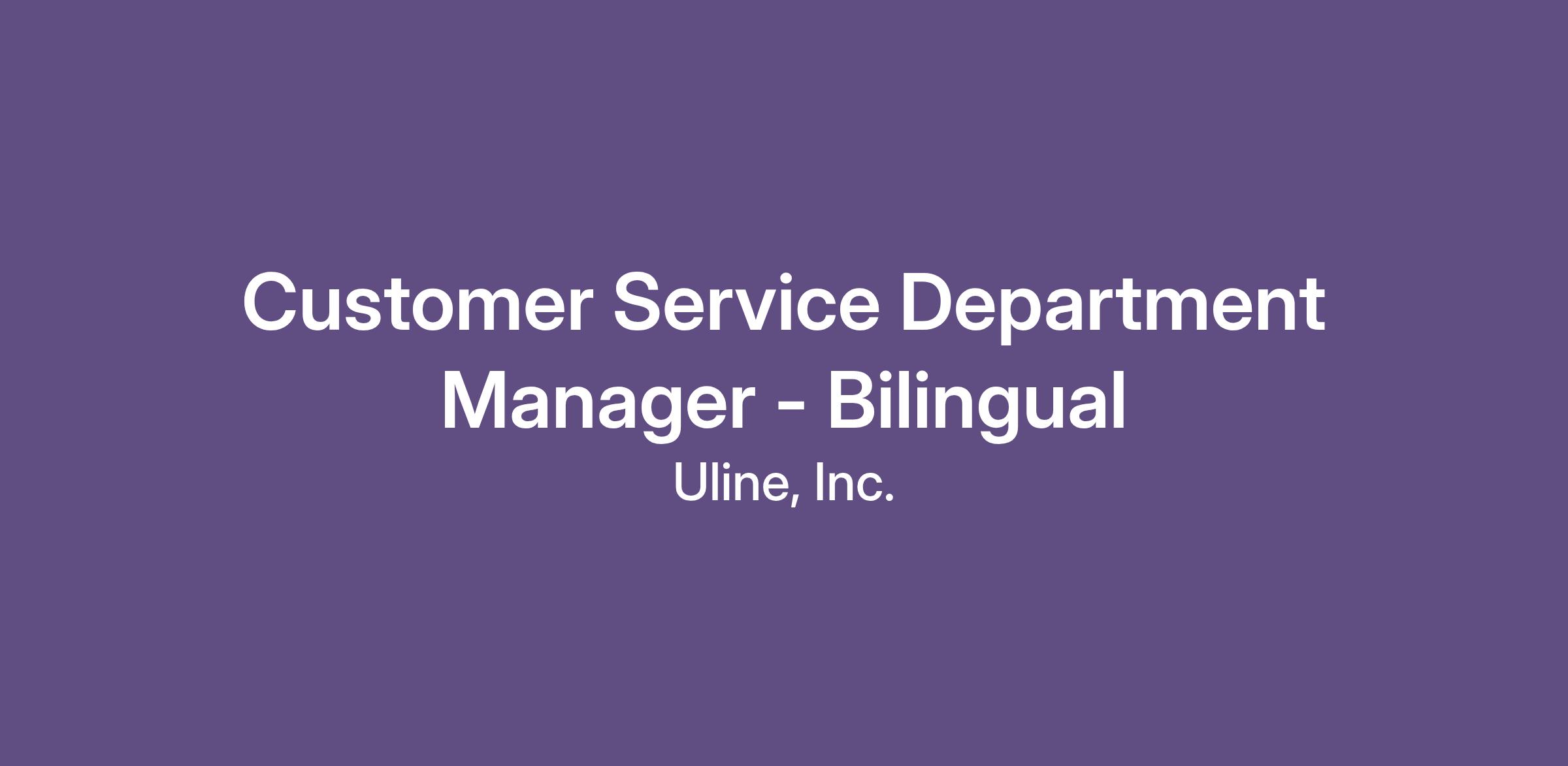 Fast, friendly, and customer-focused - that’s what makes Uline’s customer service legendary! As a Bilingual Customer Service Department Manager, continue this legacy by empowering our teams to deliver the exceptional experience our customers love.