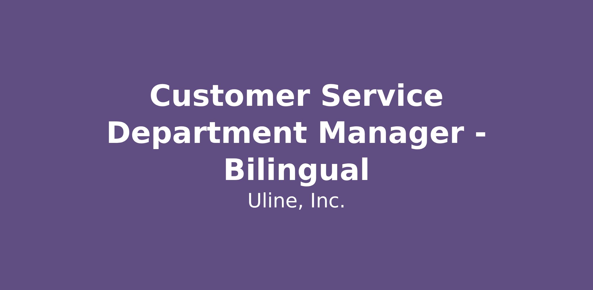 Fast, friendly, and customer-focused - that’s what makes Uline’s customer service legendary! As a Bilingual Customer Service Department Manager, continue this legacy by empowering our teams to deliver the exceptional experience our customers love.