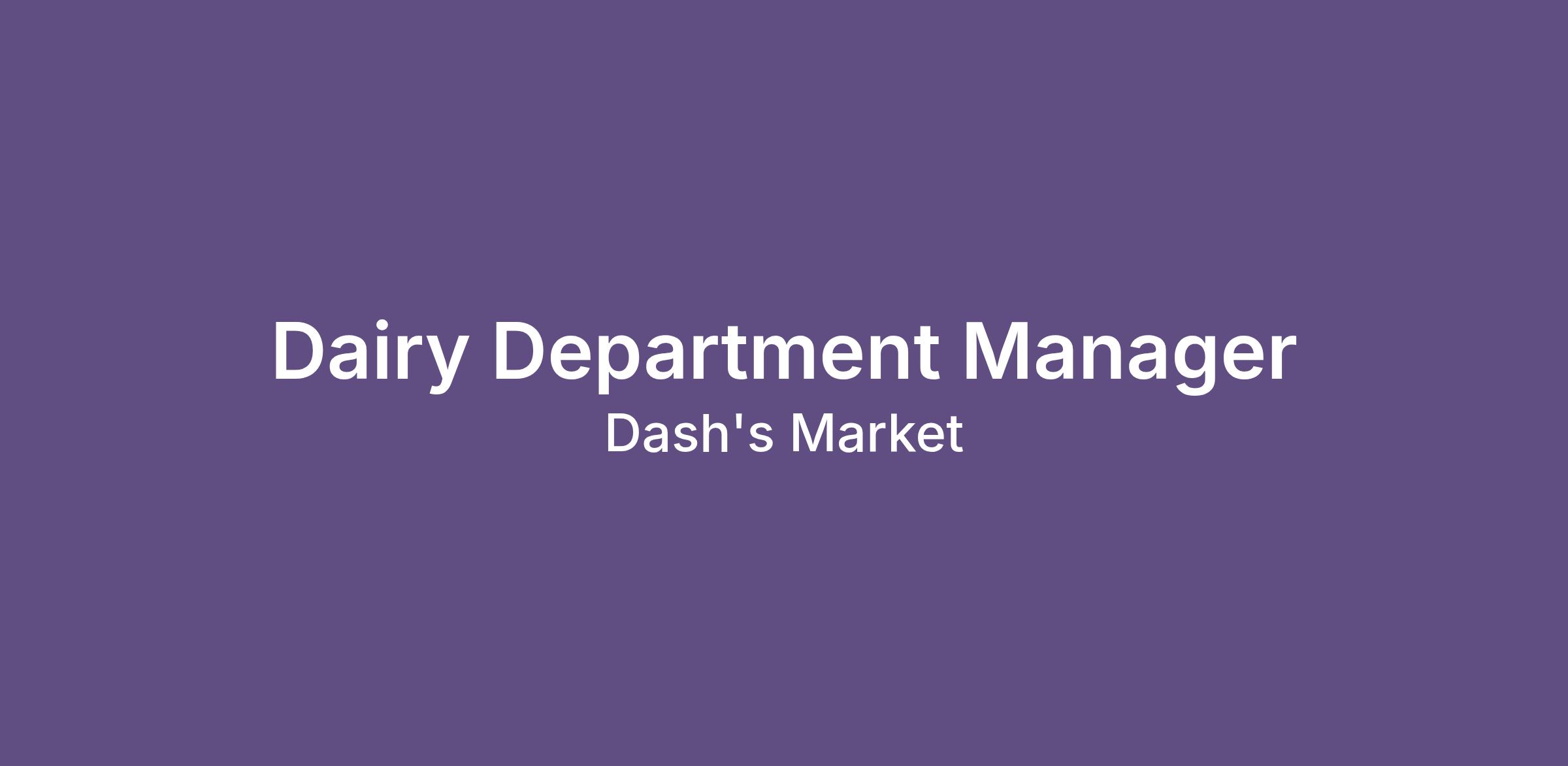 Managing our DAIRY department includes but is not limited to:
