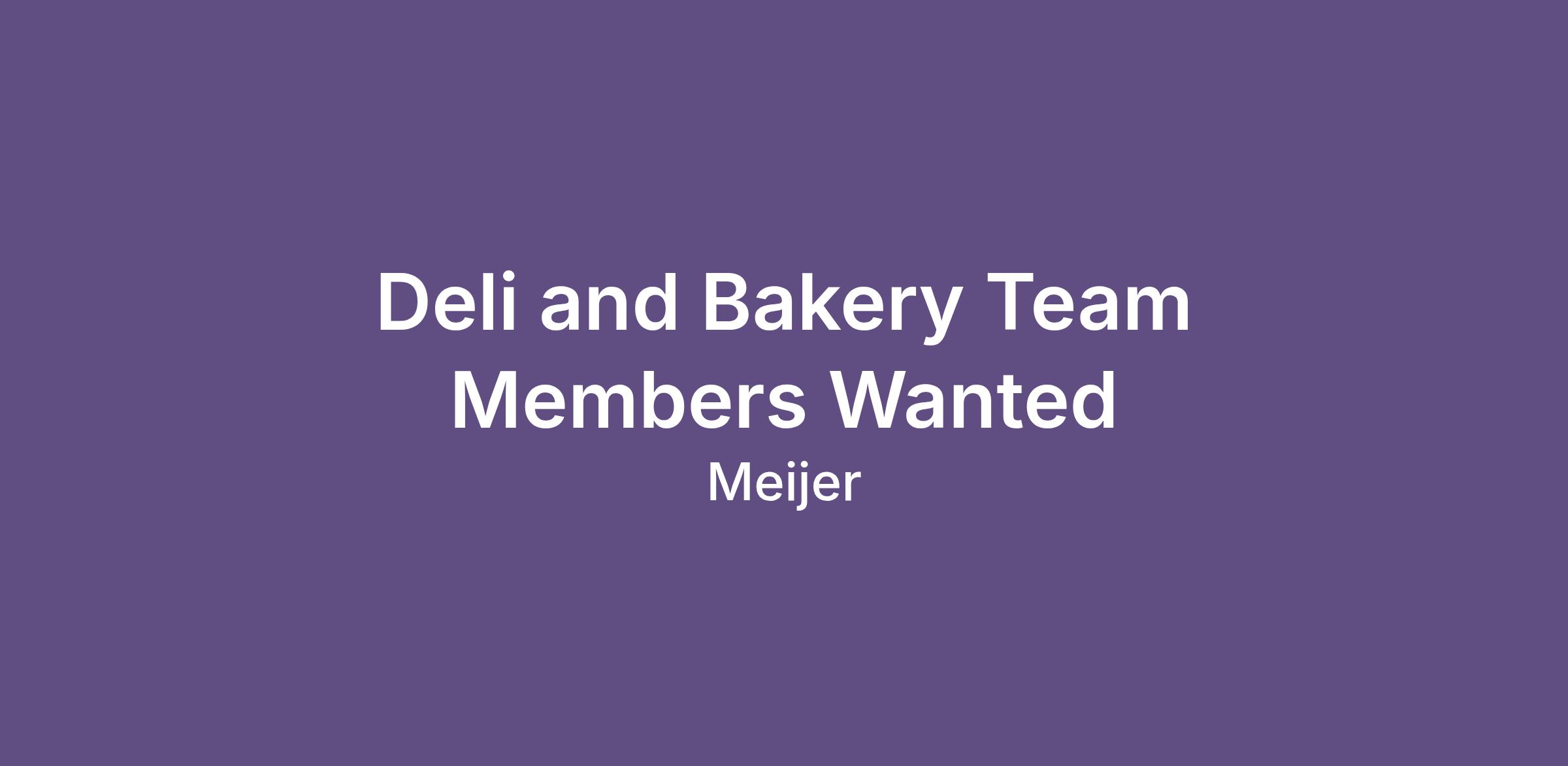 Deli and Bakery Team Members Wanted