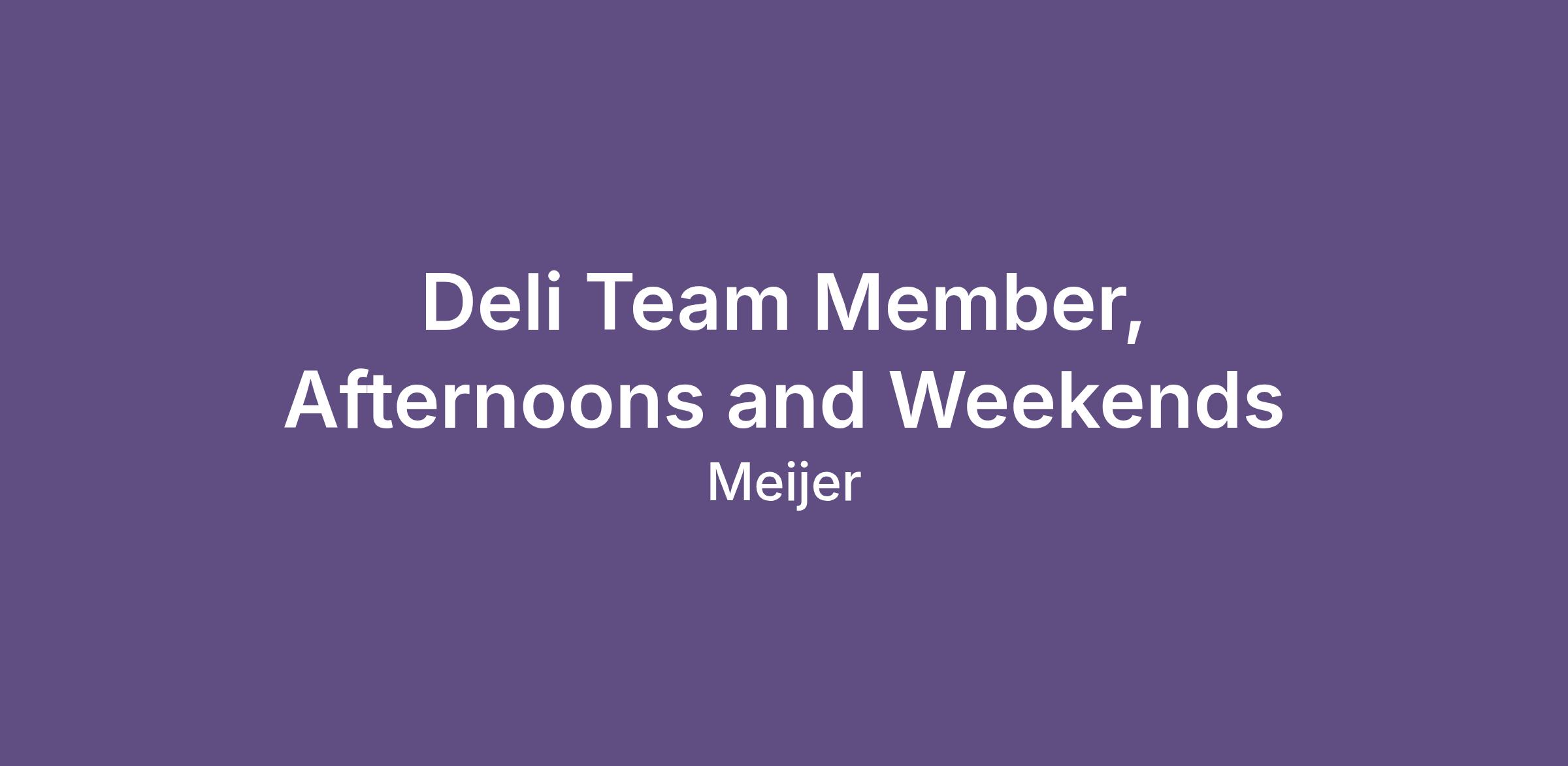 Deli Team Member, Afternoons and Weekends